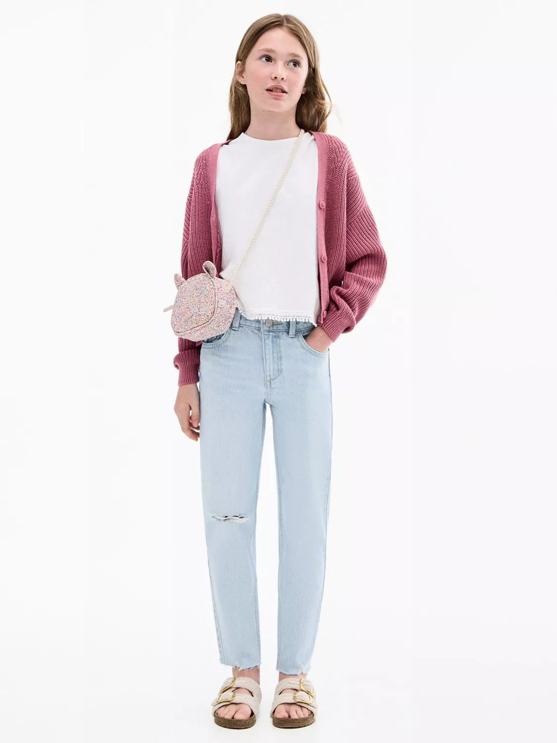 Soft denim mom jeans bring comfort and urban style to their day, with a relaxed fit that’s perfect for everyday play and adventures.