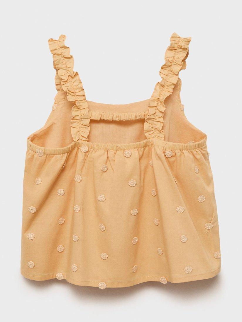 MangoKids' Mousse Cotton Blend Embroidered Blouse, Medium Yellow