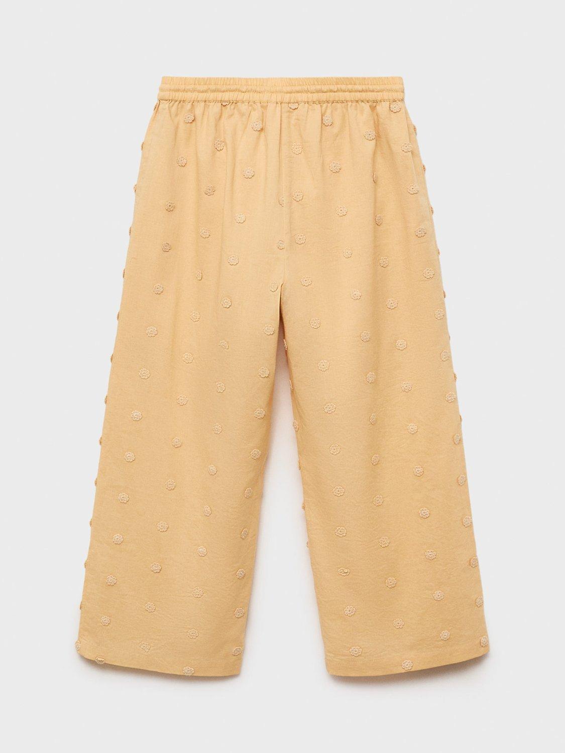 Pure cotton trousers from Mango, designed with an elasticated drawstring waist and all-over floral embroidery. Cut to a straight fit.