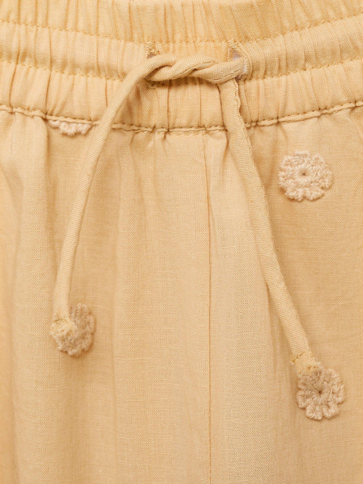 MangoKids' Mousse Cotton Embroidered Drawstring Trousers, Medium Yellow