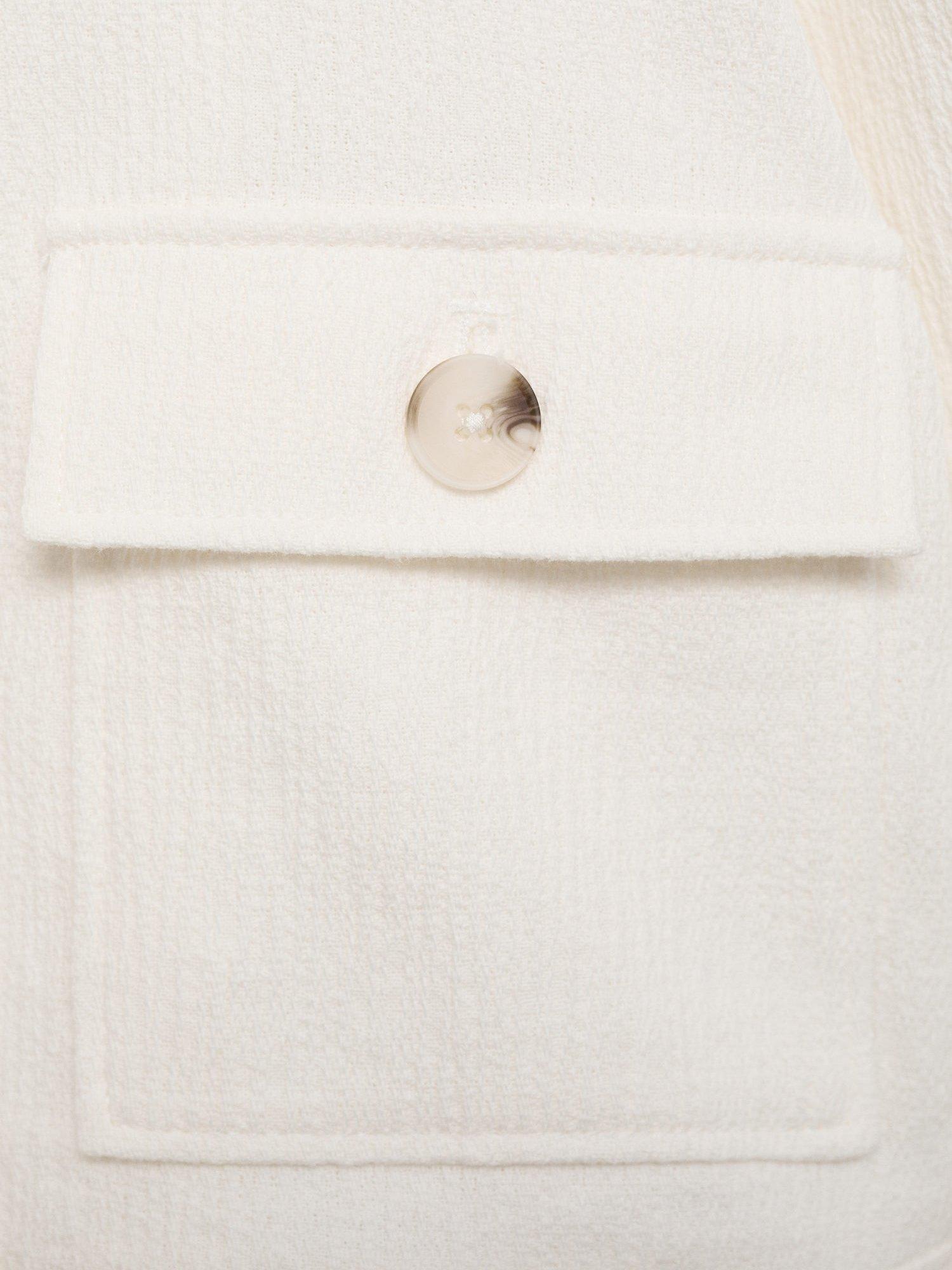 100% Cotton jacket with a button up, straight design. Fringe detail, Inner lining and Mother of pearl effect buttons with two flap and button pockets on the front make for practical wear.