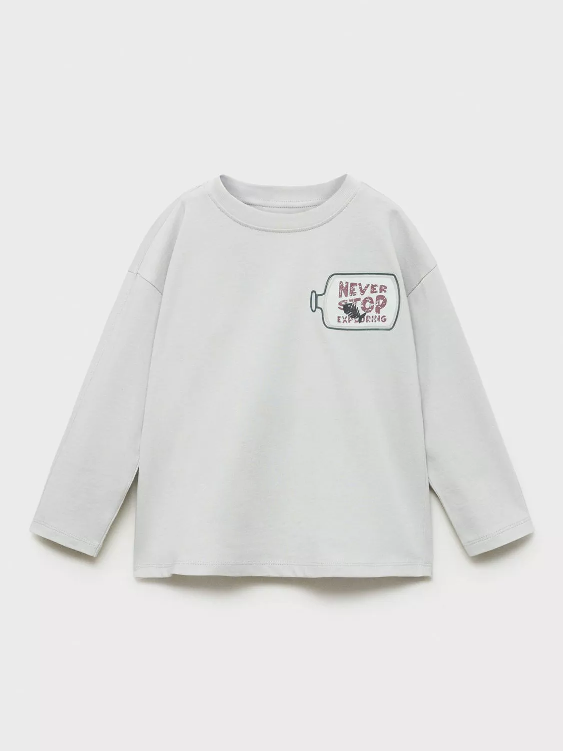 MangoKids' Never Stop Exploring Long Sleeve Top, Pastel Grey