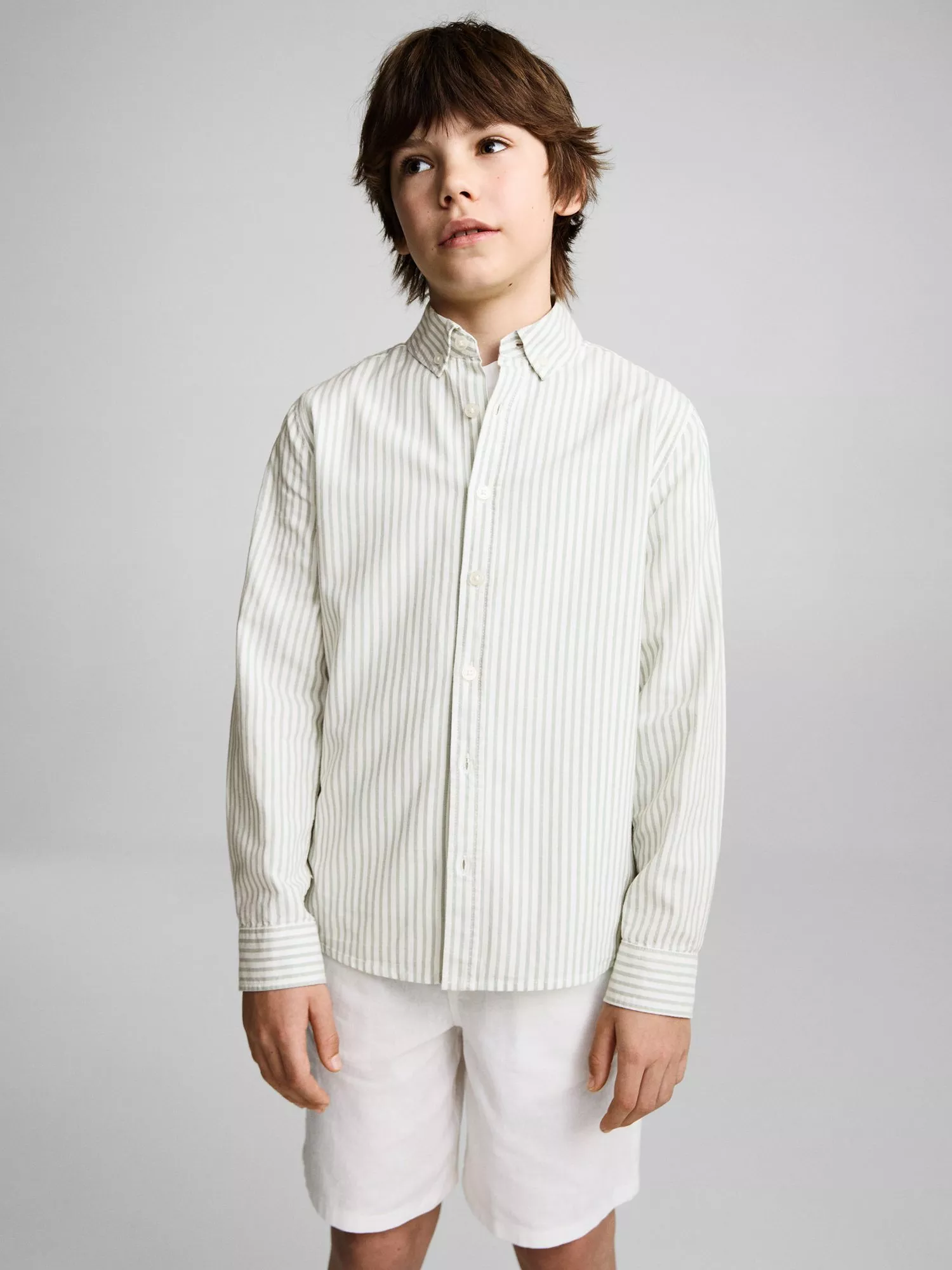 Mango’s striped long-sleeve cotton shirt adds a spark of character to everyday style. With its crisp collar and soft texture, it’s designed for comfort and confidence.