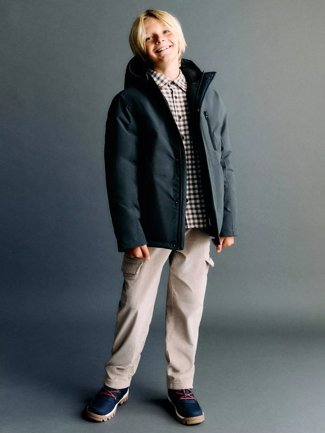 Keep them warm in style with this quilted jacket, featuring a straight design and a practical hood. Made from durable fabric, it ensures maximum protection from the elements with both a zip and press-stud fastening. Finished with two side pockets and a secure zipped chest pocket for all their essentials.