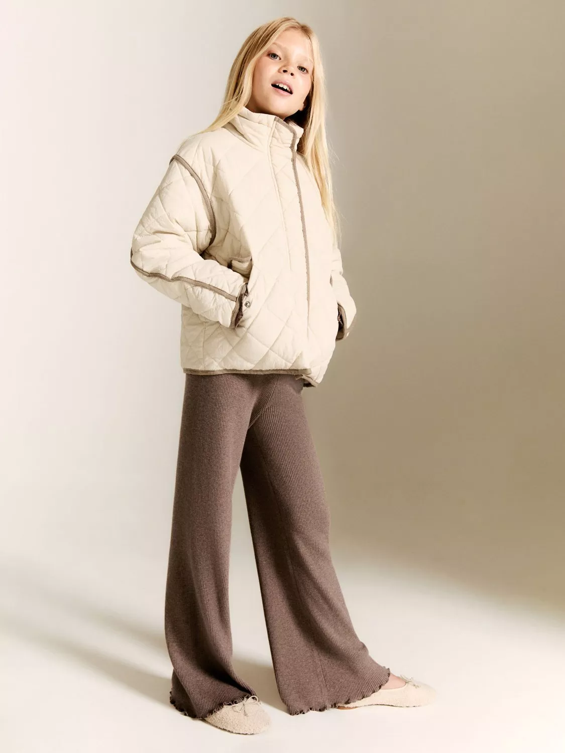 Designed with a quilted fabric to keep little ones warm, this jacket features a high collar, long sleeves, and zip and button fastenings. Finished with contrasting seams and two side pockets for all their essentials.