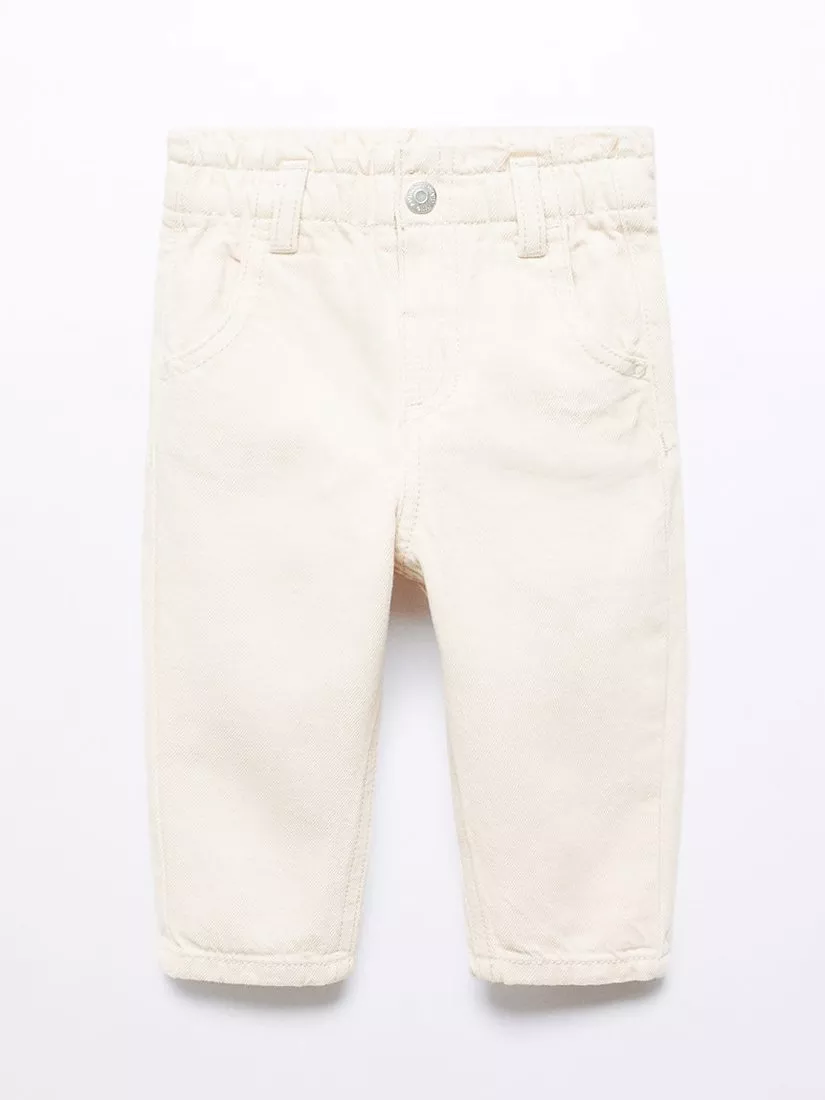 Paperbag style denim jeans cut from cotton in a skinny fit. Finished with a comfy elasticated waist and easy one button fastening.