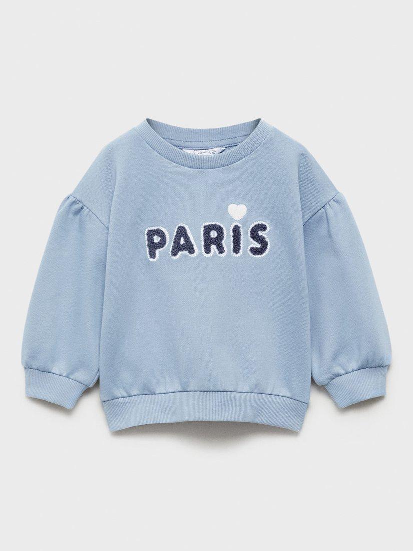MangoKids' Paris Puff Sleeve Sweatshirt, Pastel Blue