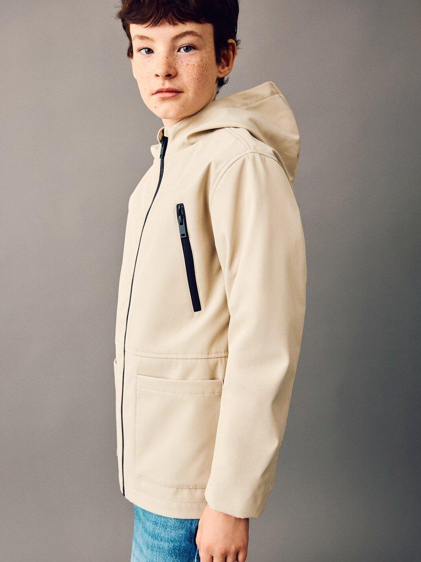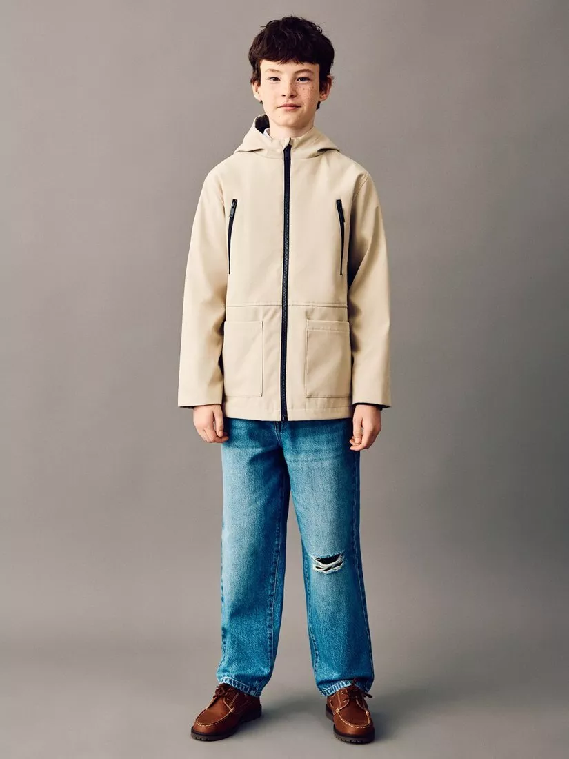This parka keeps them dry on rainy days, with a modern look and practical fit. Complete with roomy pockets, this simple design pairs well with any outfit.