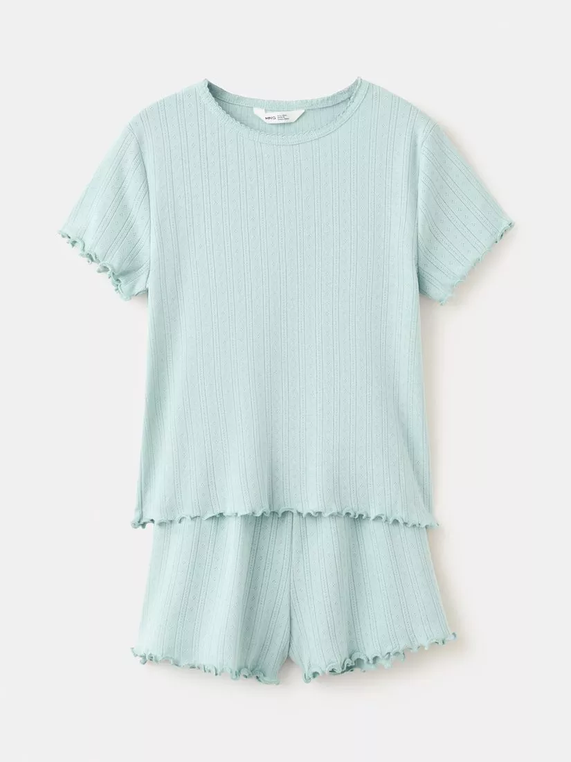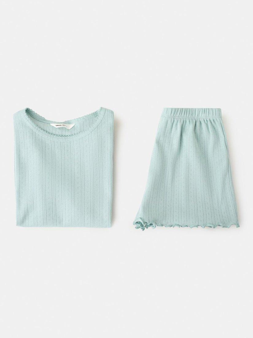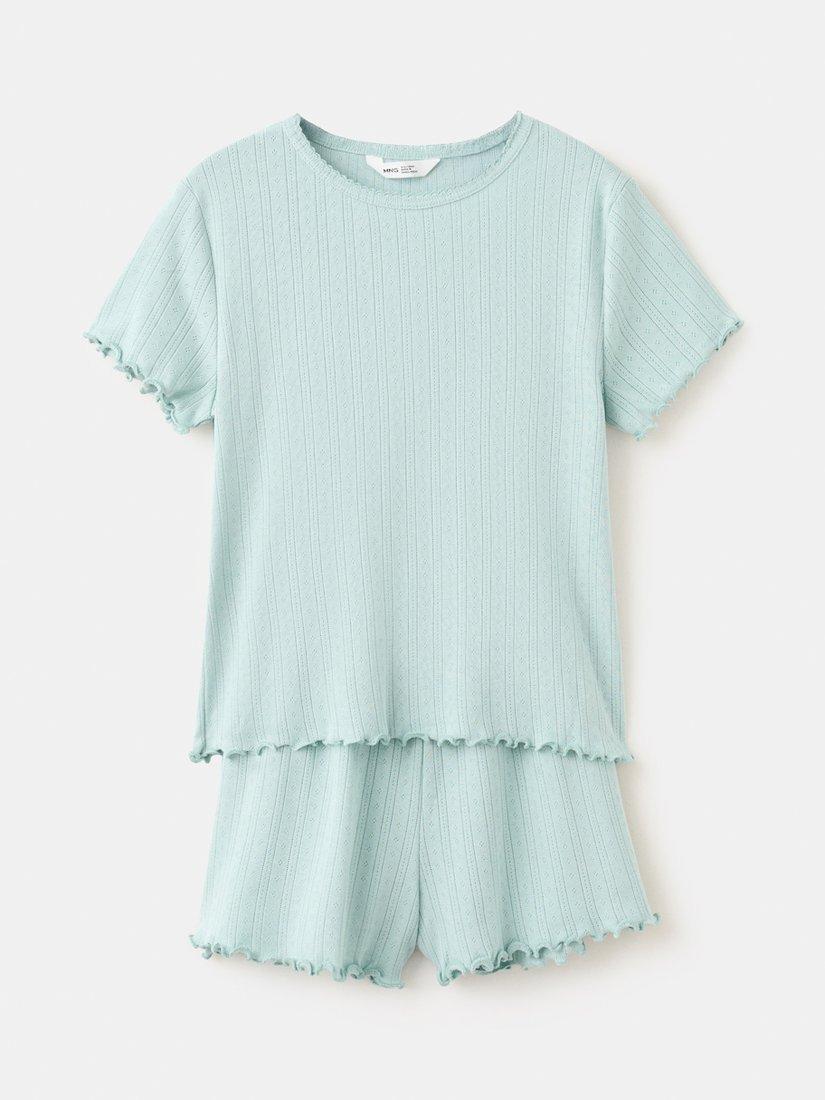 MangoKids' Pointelle Ribbed Short Pyjamas, Aqua
