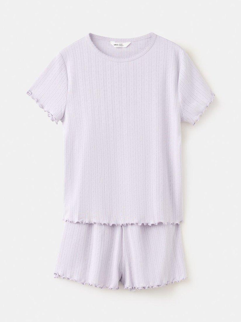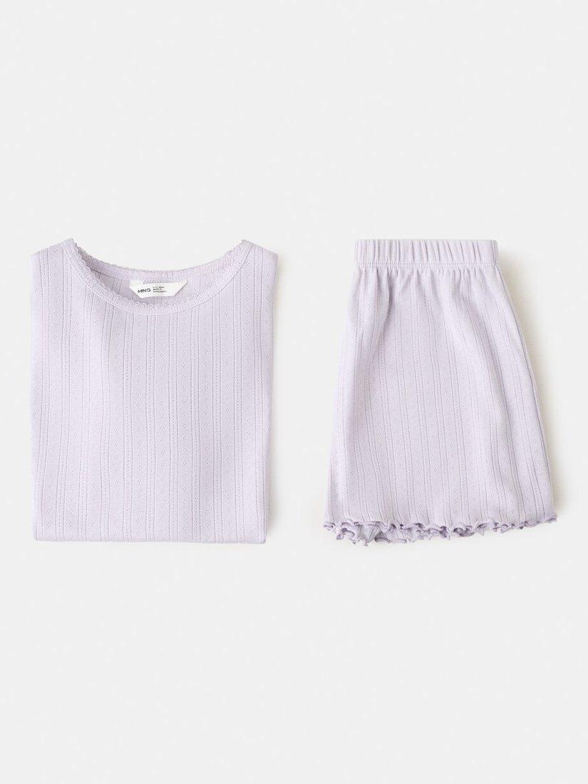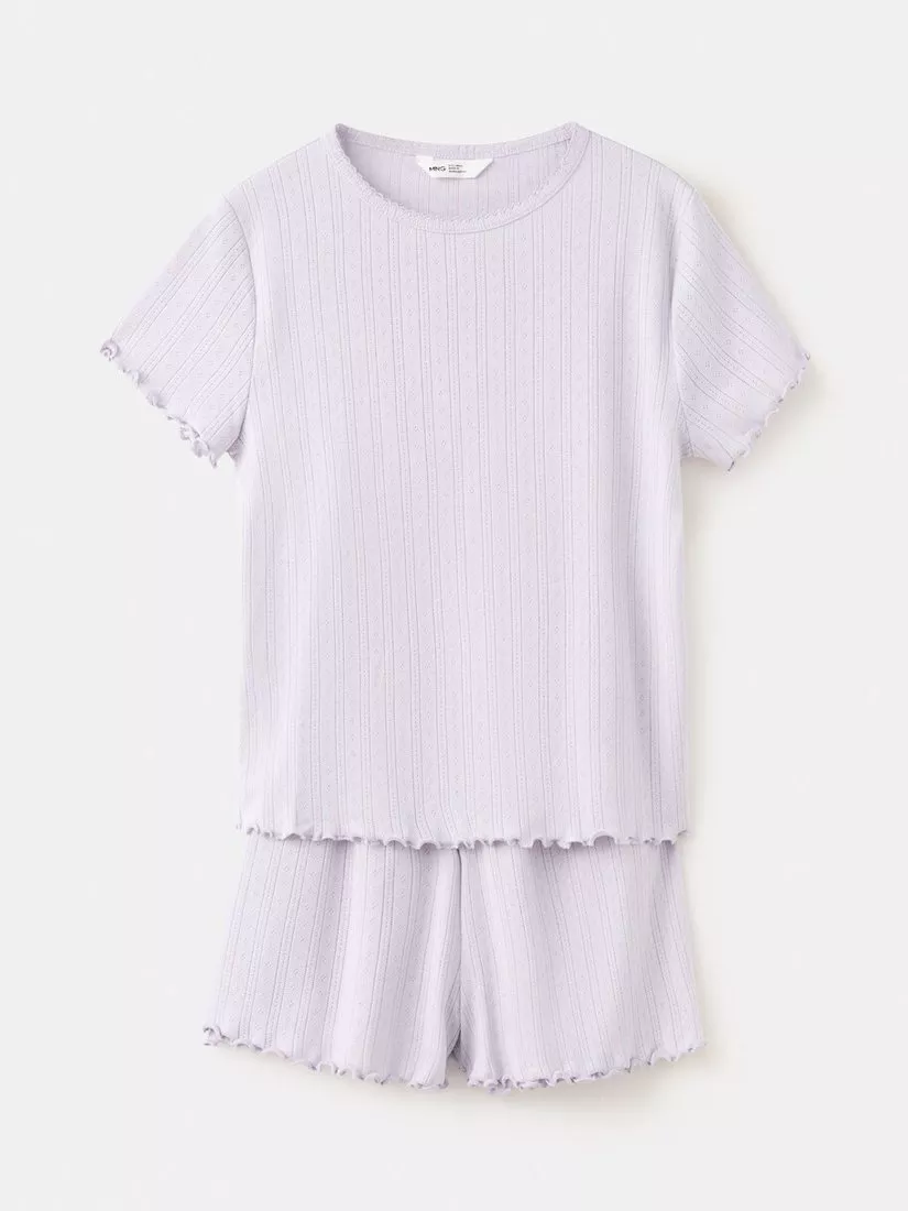 MangoKids' Pointelle Ribbed Short Pyjamas, Lilac