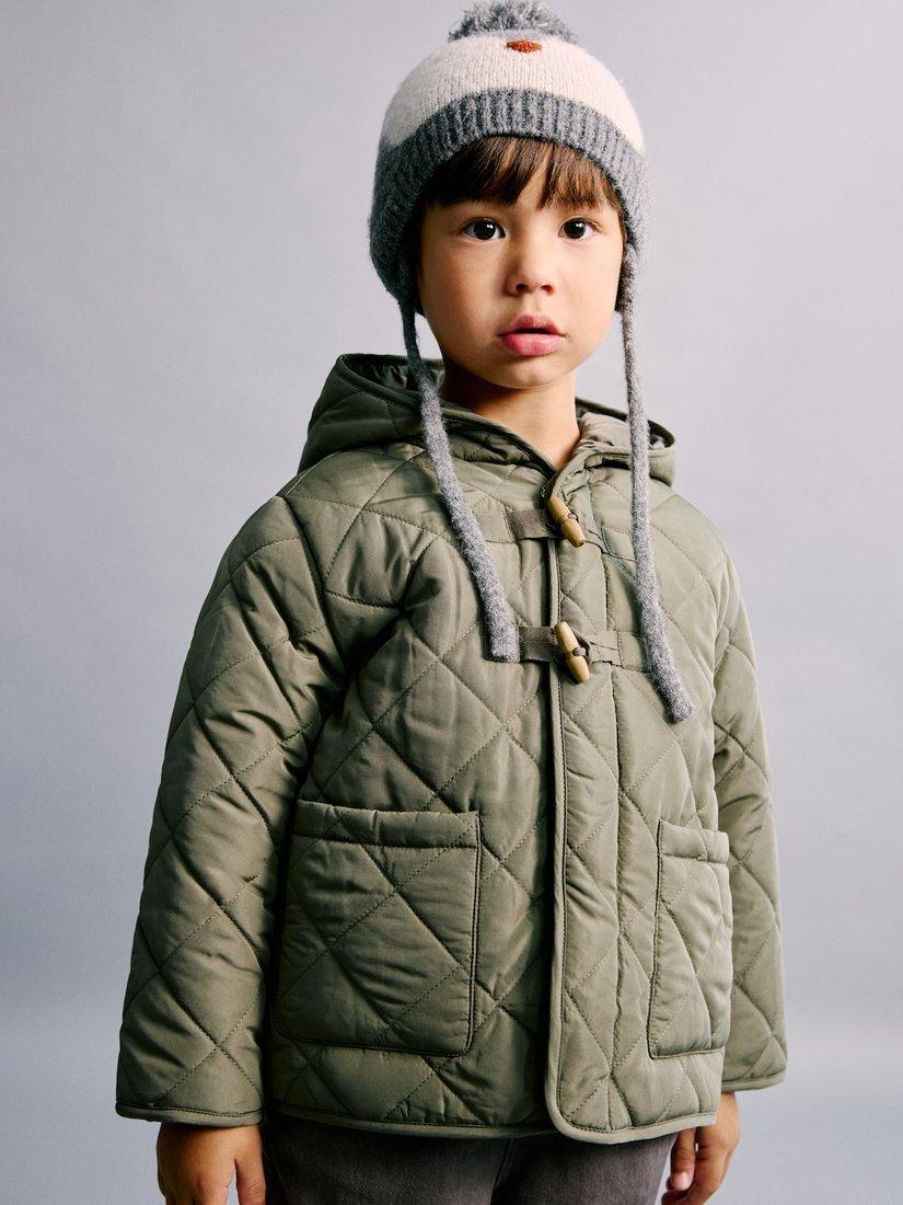 This quilted duffle coat keeps them warm and comfortable, perfect for everyday adventures at school or the park. The simple design adds a modern touch to any outfit.