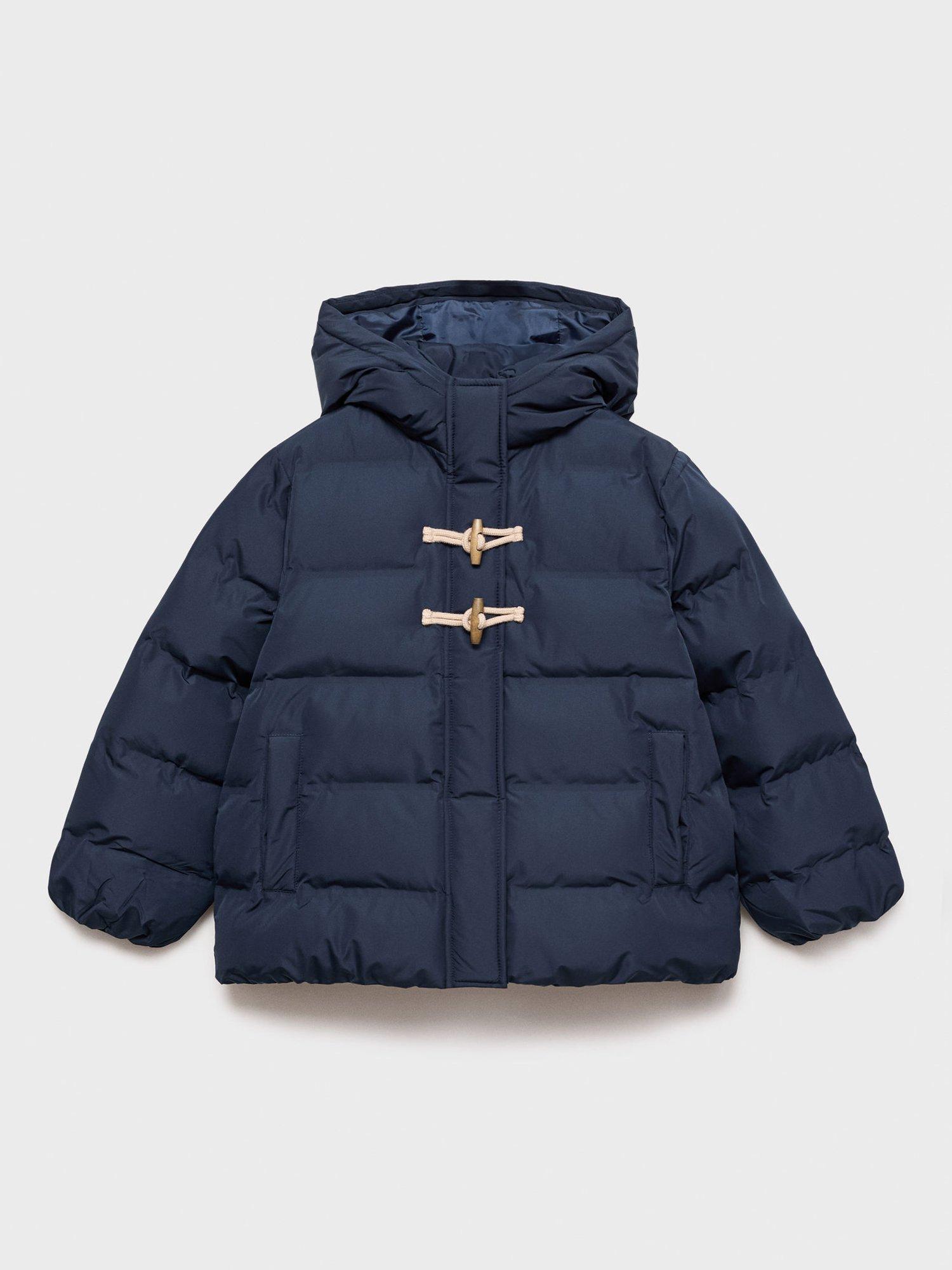 Quilted jacket with cosy turtleneck and wood effect toggle buttons. Complete with two front pockets, concealed zip, snap button fastenings and a name label inside.
