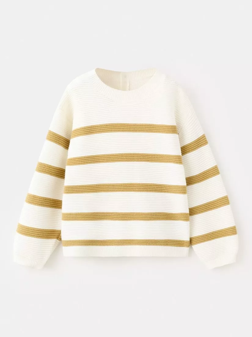 This cotton jumper features bold ribbed detailing and a comfy fit, perfect for days at play or relaxing. Stylish details lend a fresh look for any adventure they choose.