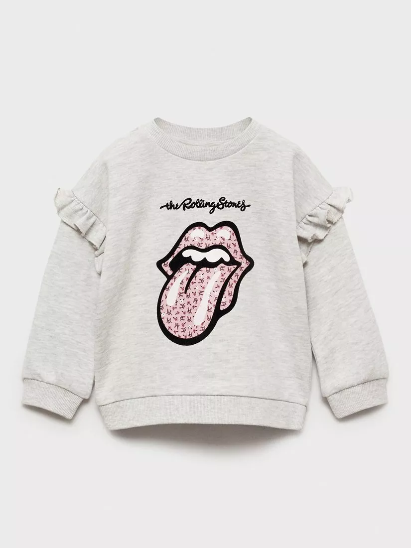 MangoKids' Rolling Stones Frill Sweatshirt, Pastel Grey