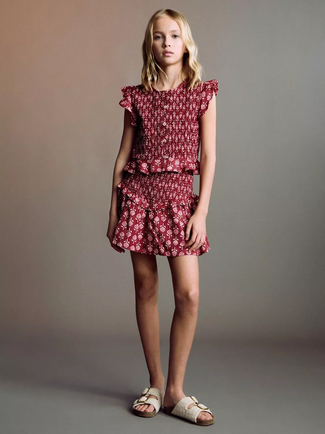 MangoKids' Ruffled Gathered Mini Skirt, Medium Red