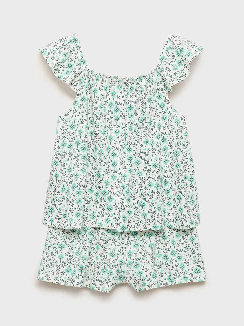 MangoKids' Salty Cotton Floral Pyjama Set, Green