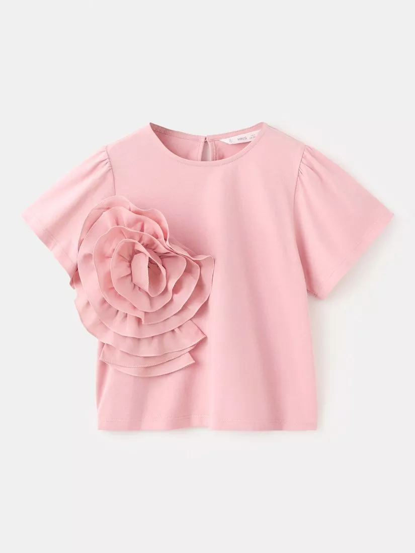 MangoKids' Sculptural Rosette Appliqué Boxy T-Shirt, Pink