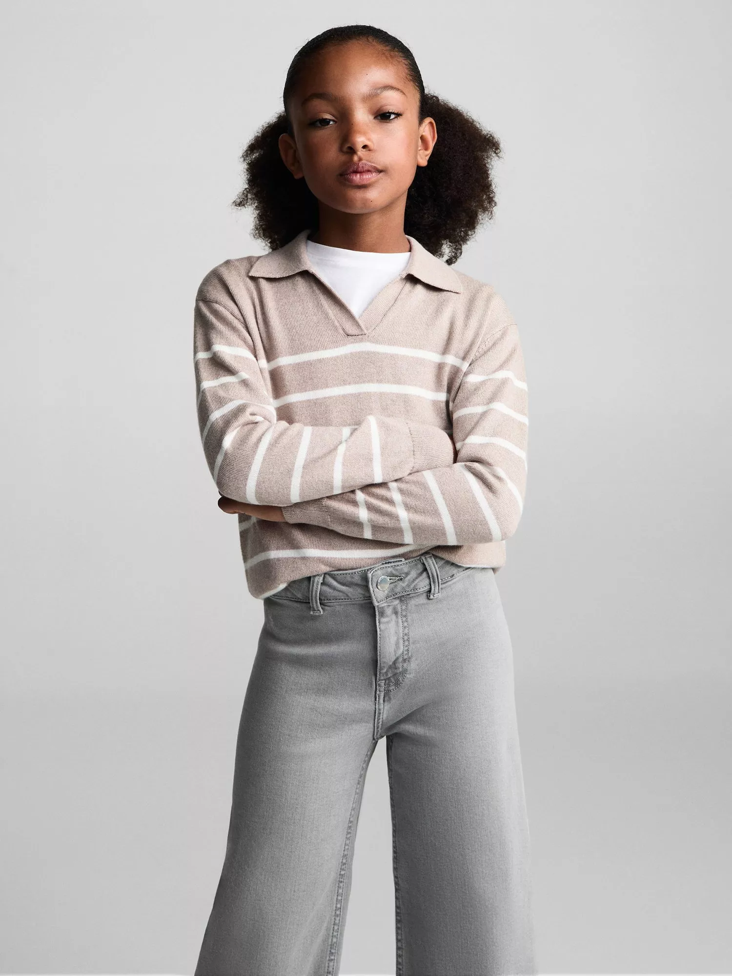 Cotton blend denim jeans with a flared leg and a comfy seamless design.