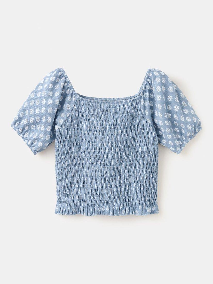 MangoKids' Short Sleeve Smock Blouse, Blue