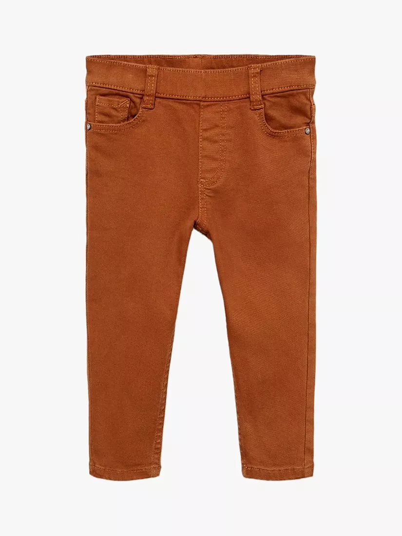 Woven in a denim style cotton fabric with a little stretch in the fabric, these skinny fit Mango pull-on trousers are designed with a comfy elastic waist and classic five pockets.