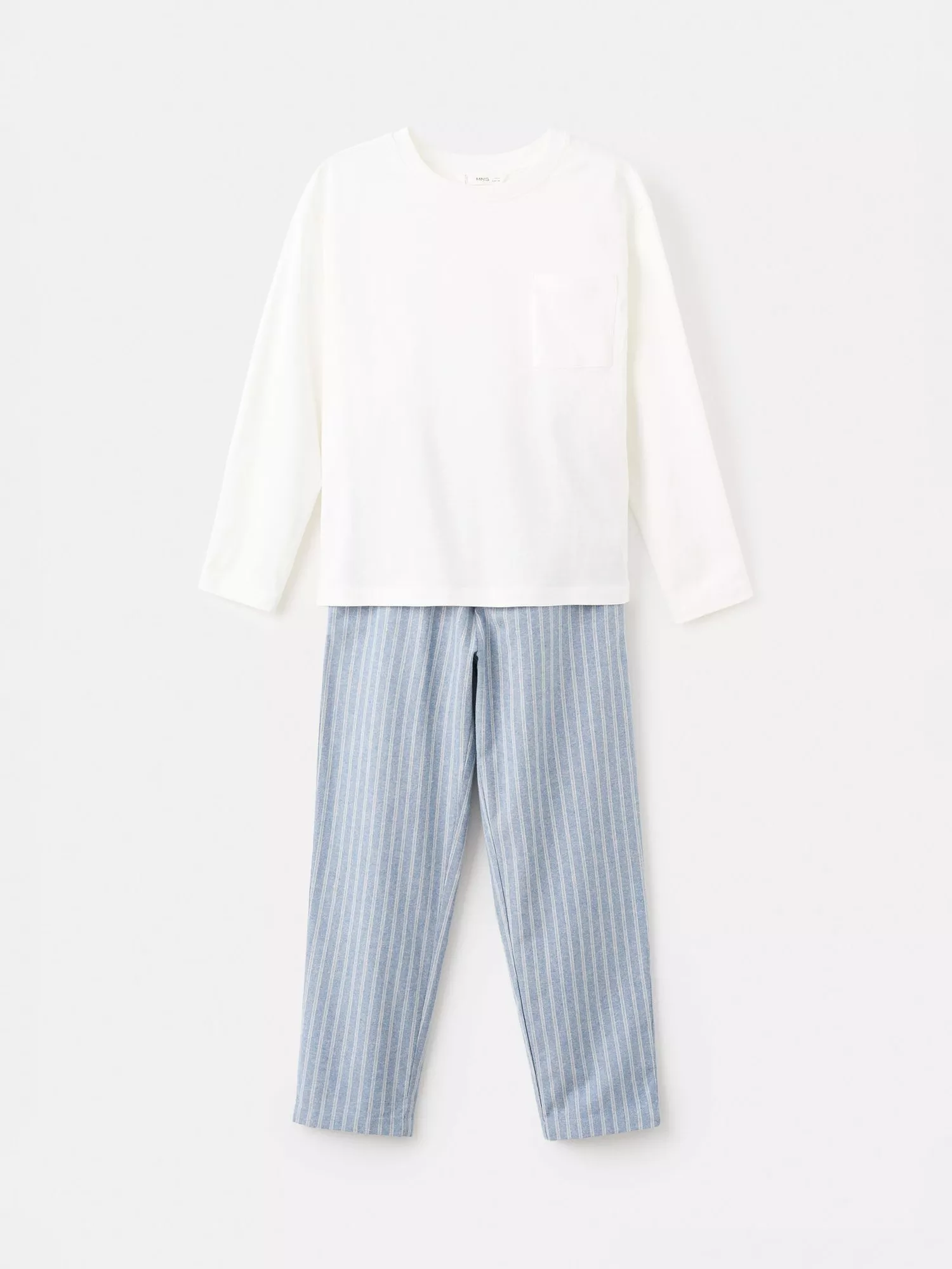 MangoKids' Snow Pure Cotton Long Sleeved Pyjama Set, Medium Blue