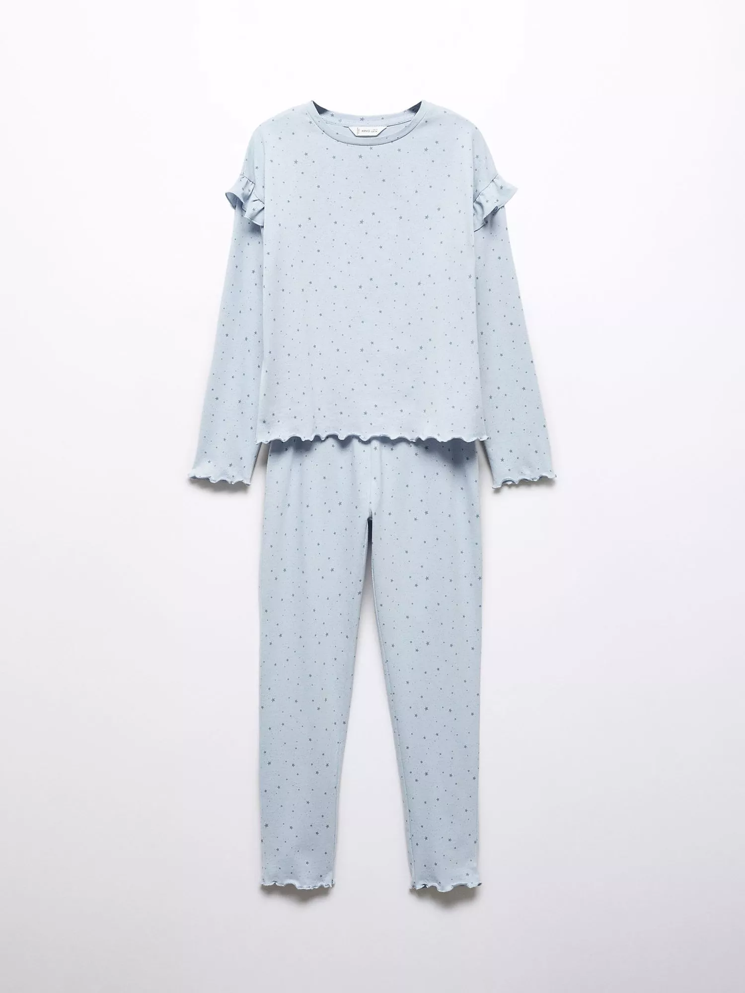 MangoKids' Star Print Ruffle Detail Pyjamas, Medium Blue