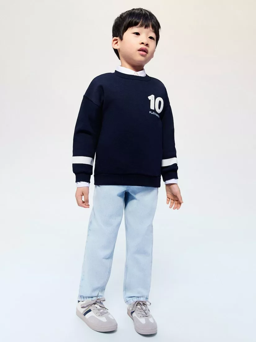 These straight denim jeans are made from pure cotton, offering a comfortable fit for kids on casual days. They're designed to match current trends and suit everyday adventures.