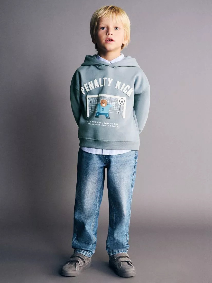 These straight denim jeans are made from pure cotton, offering a comfortable fit for kids on casual days. They're designed to match current trends and suit everyday adventures.