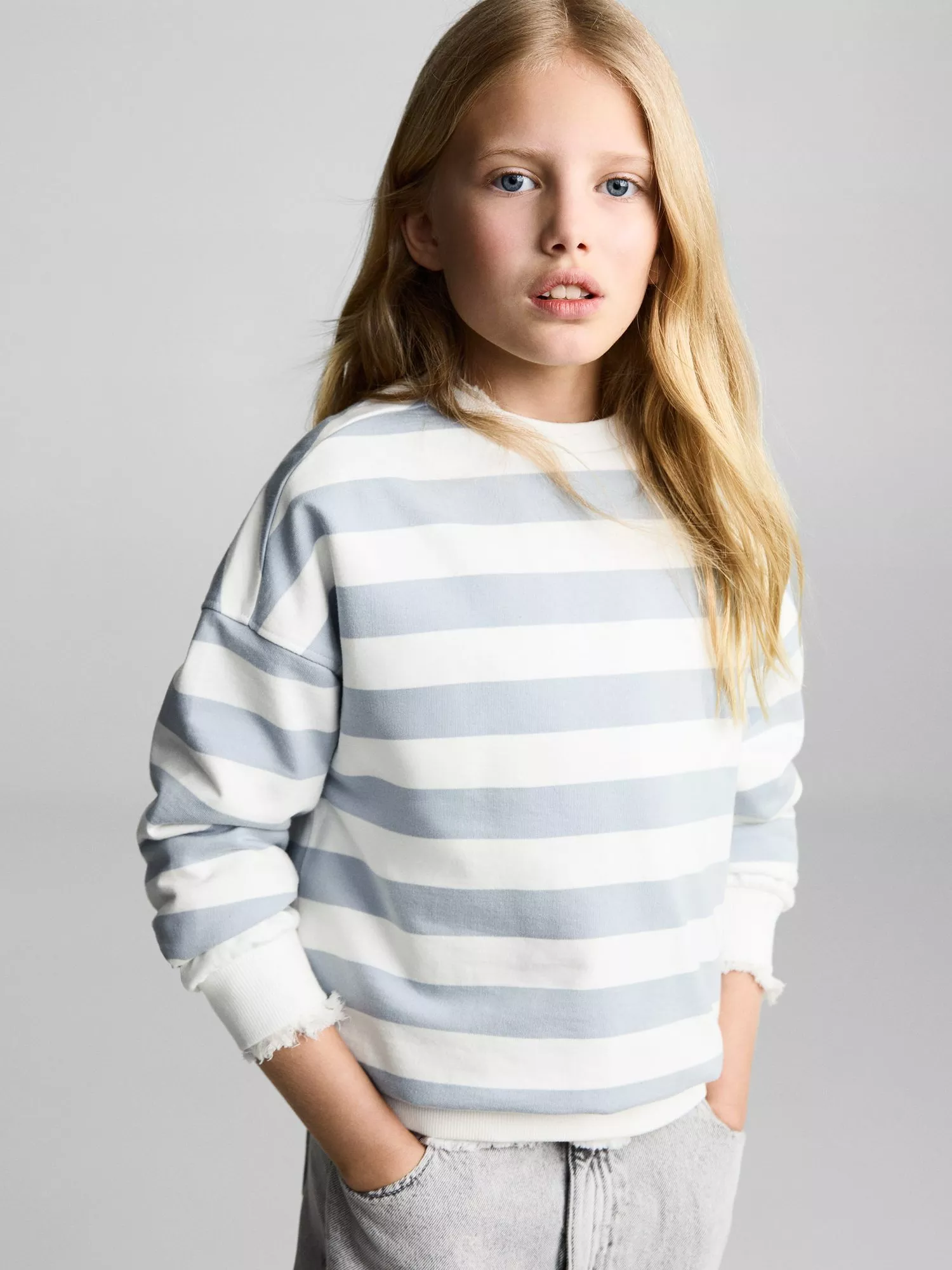 MangoKids' Stripe Sweatshirt, Light Pastel Blue
