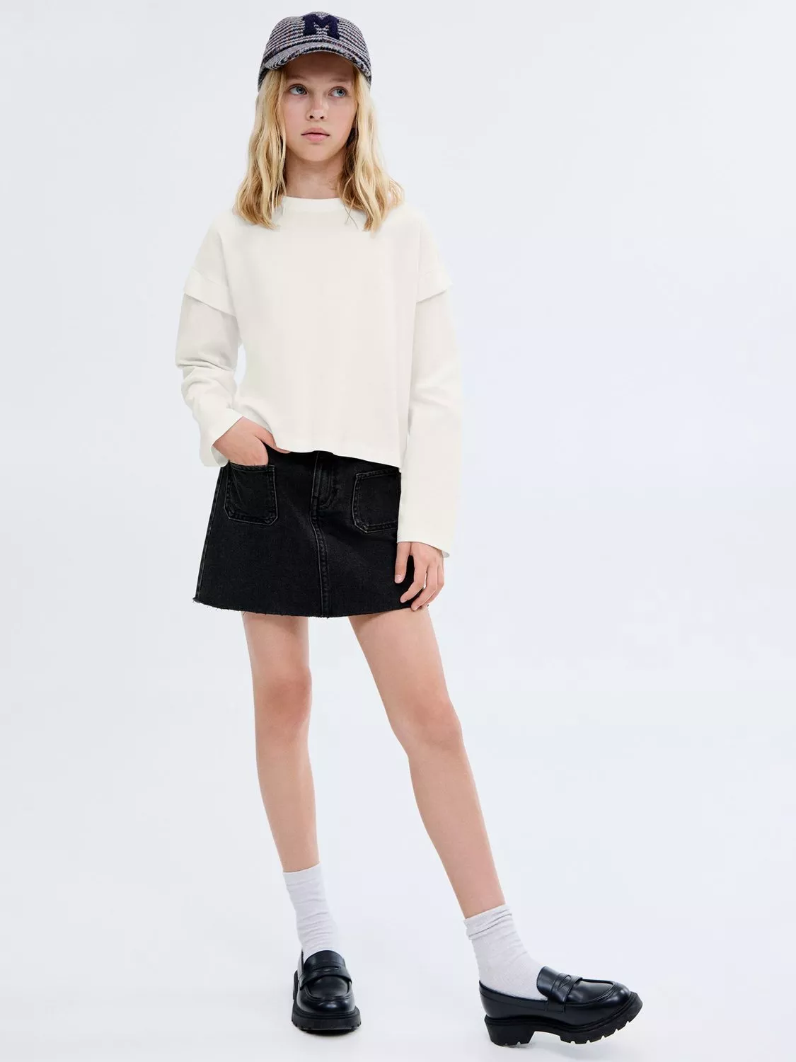 This A-line mini skirt features sturdy denim and a classic, versatile look, making it ideal for playtime or dressing up for special outings.