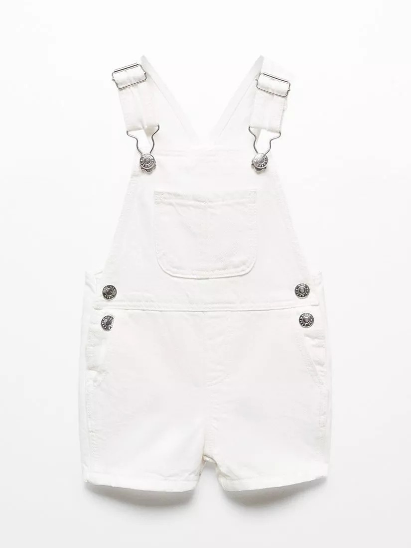 Crafted from pure cotton, these short denim dungarees have adjustable shoulder straps and metal button fastenings.