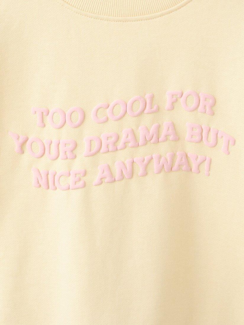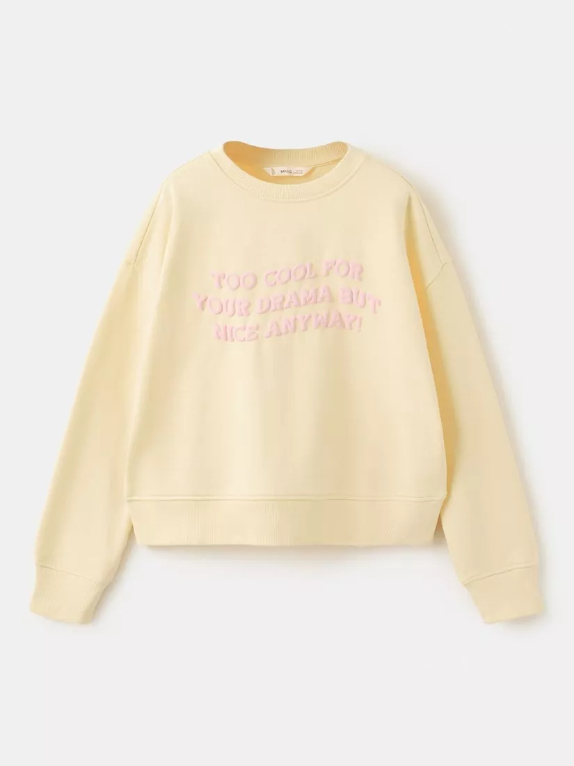 This soft cotton sweatshirt keeps them cosy all day with its comfortable fit and playful slogan design, perfect for layering during outings or relaxed moments at home.