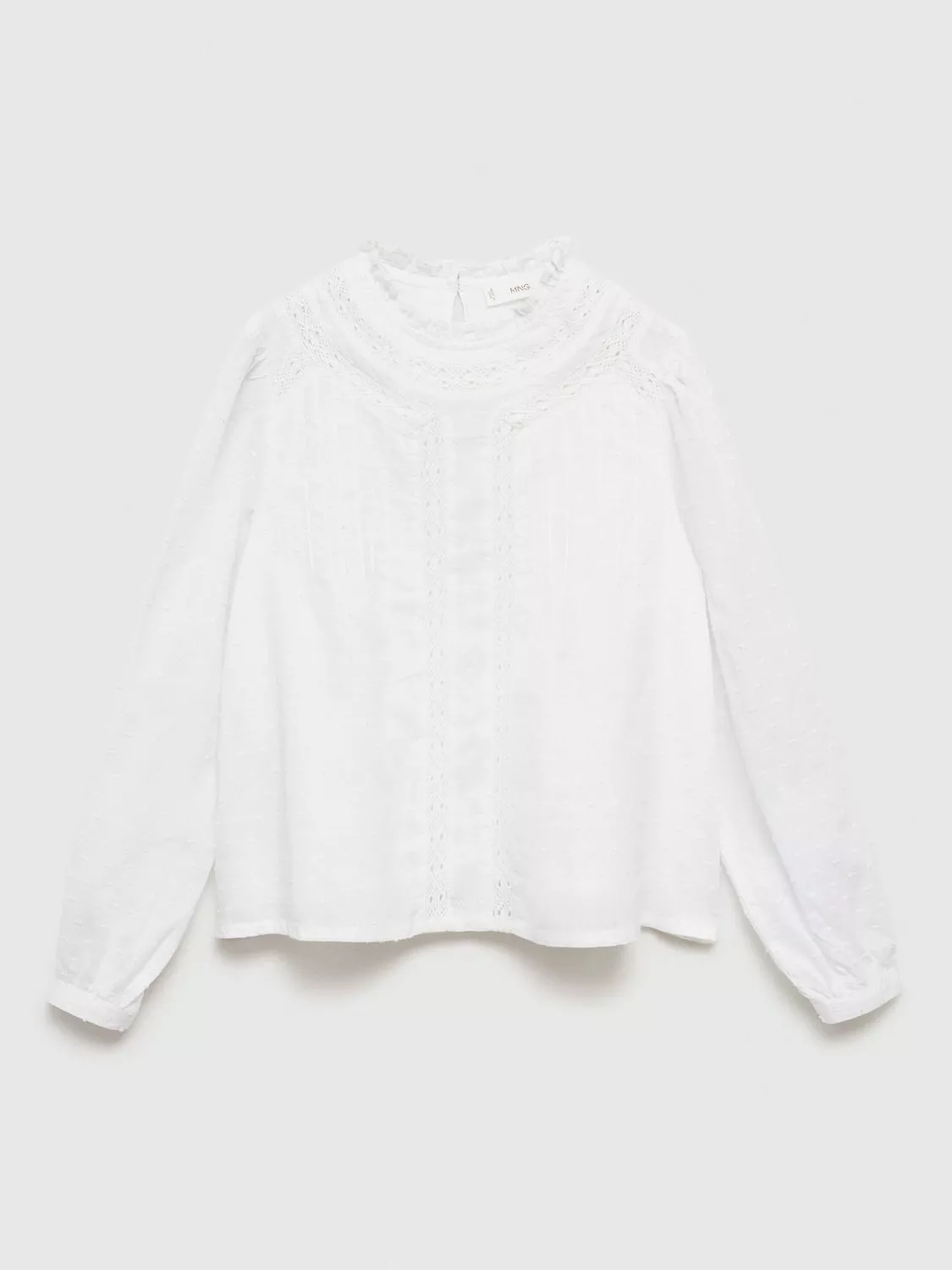 MangoKids' Tatiana Embroidered High Neck Shirt, White