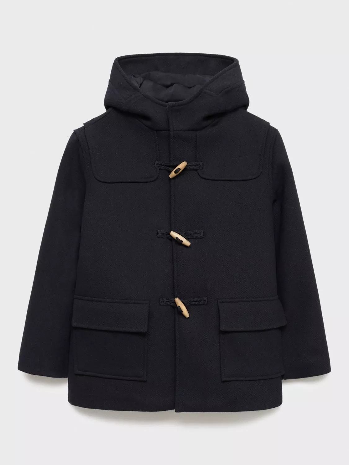Perfect as a transitional staple, the Toby coat features a classic duffle design, with a fixed hood, wooden button closure and two side pockets.