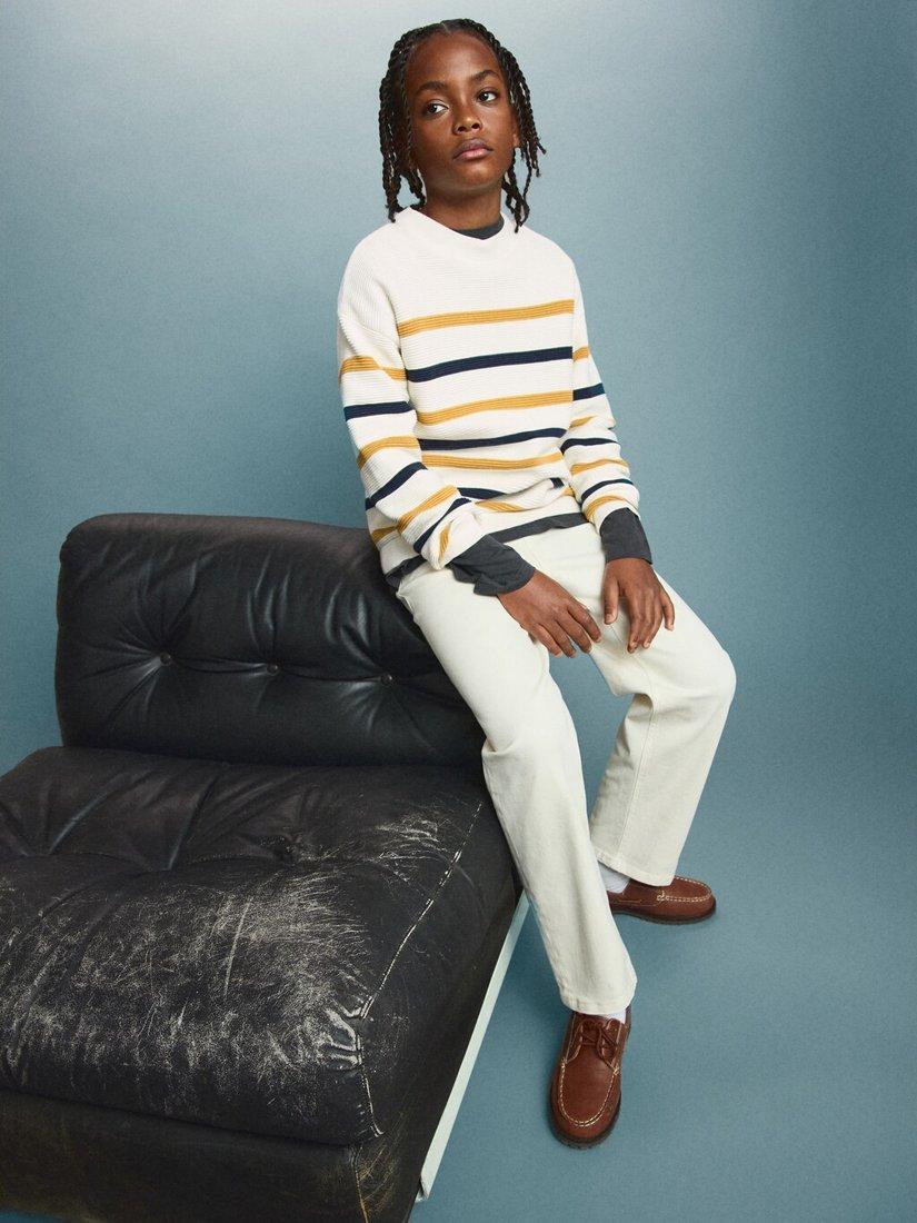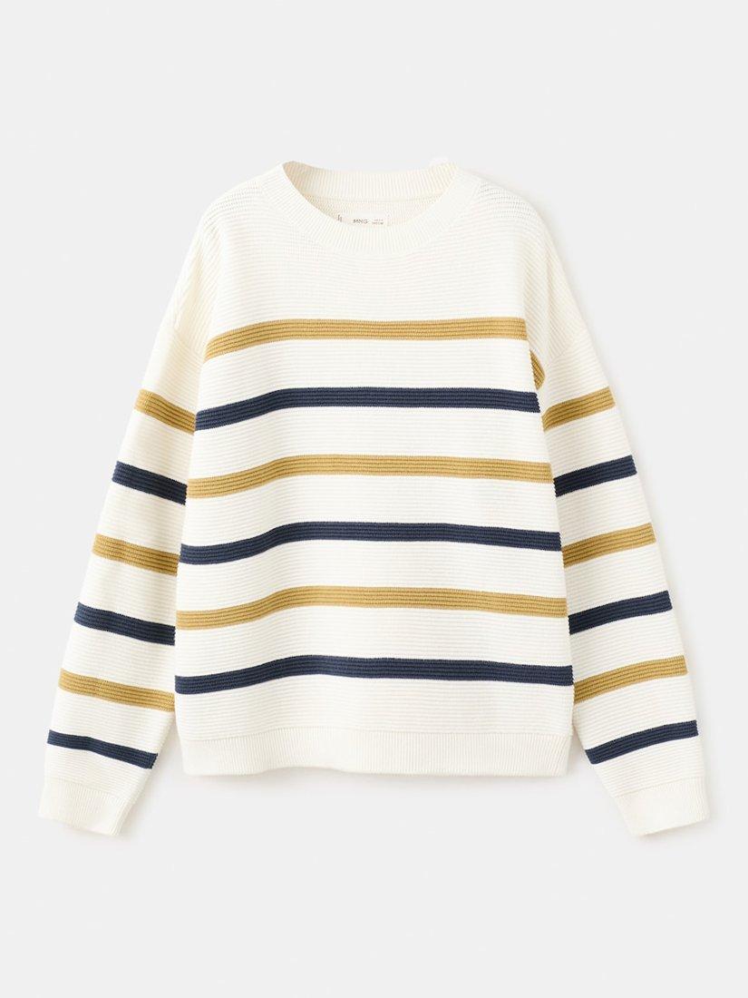 MangoKids' Tom Round Neck Striped Jumper, Mustard