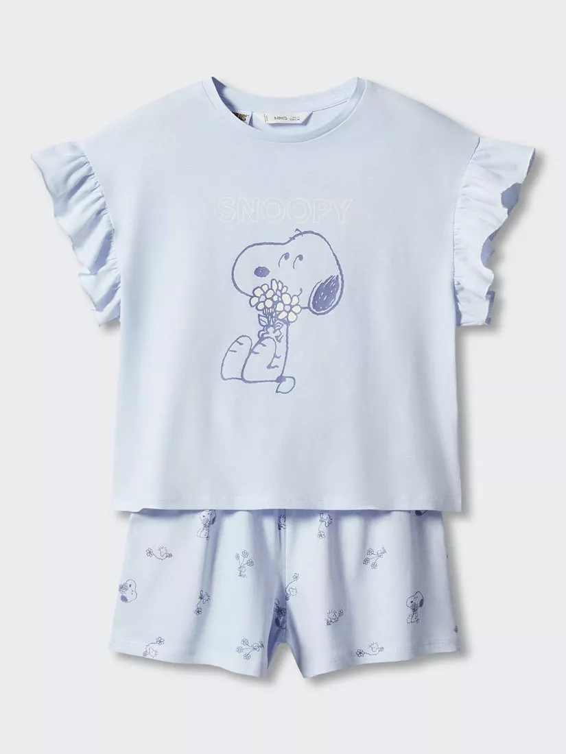 MangoKids' Valerie Snoopy Frill Shorts Pyjamas, Pastel Blue