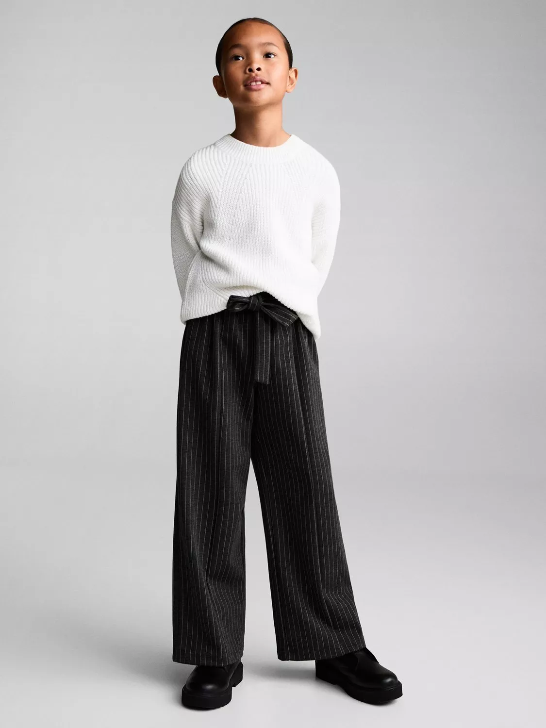 Cut to a wide leg with an elasticated self-tie belted waist, this pair of trousers from Mango are made from a blended fabric with a striped design.