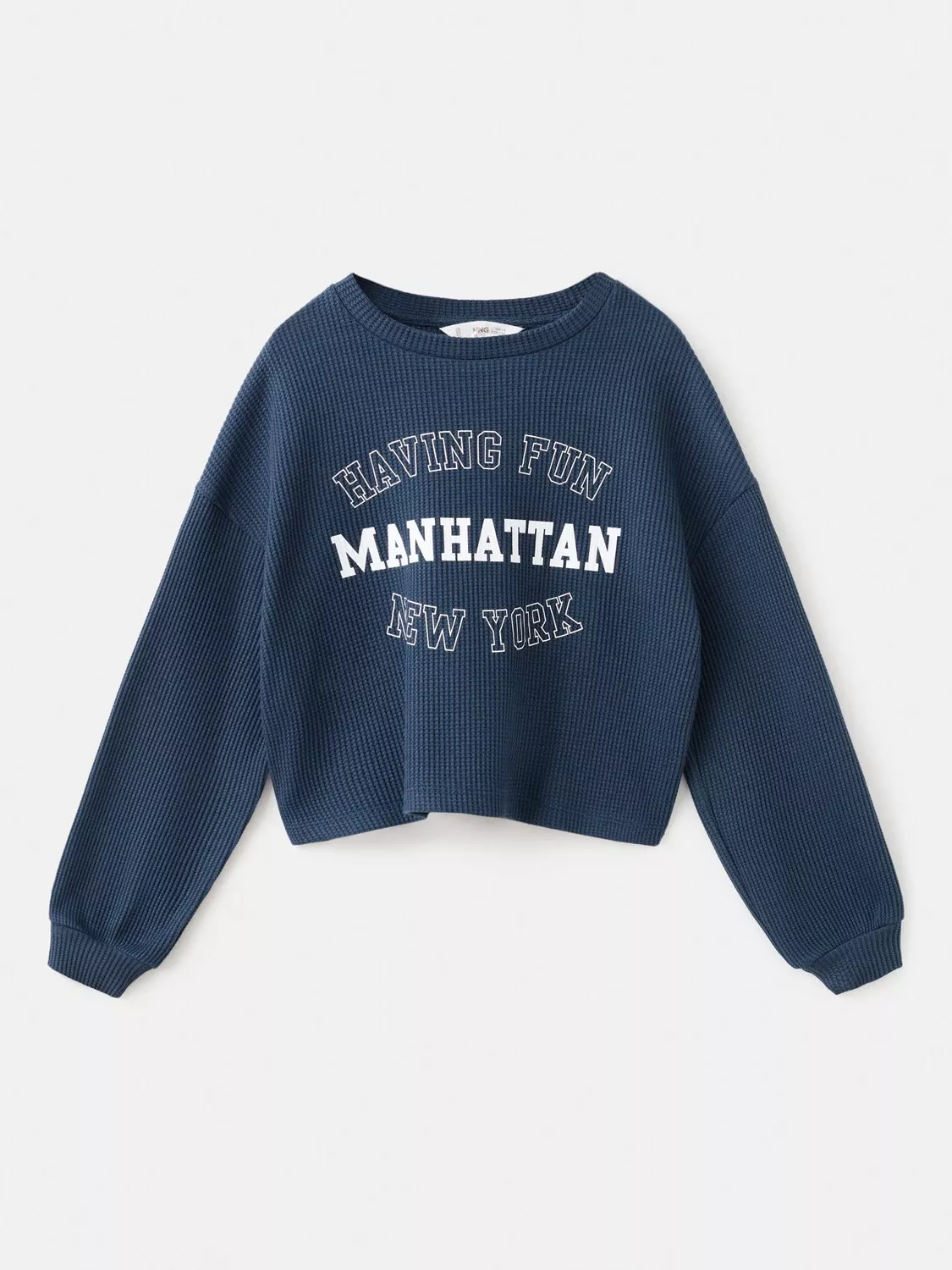 This printed waffle jumper is the ideal layer for sporty fans.