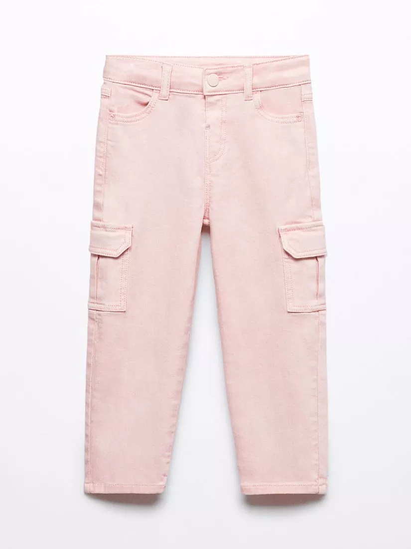 MangoKids' Wanda Pocket Cargo Jeans, Light Pastel Pink
