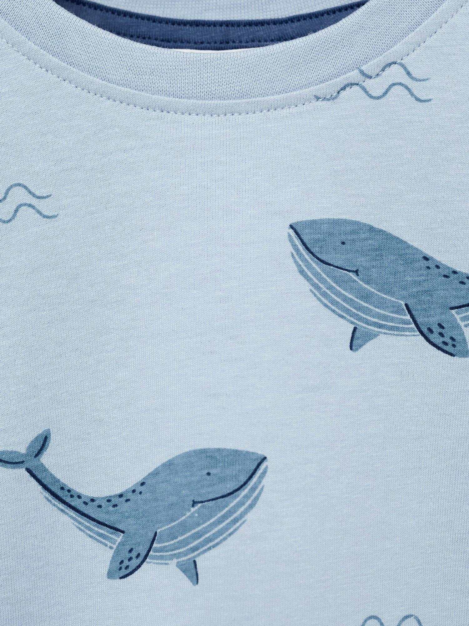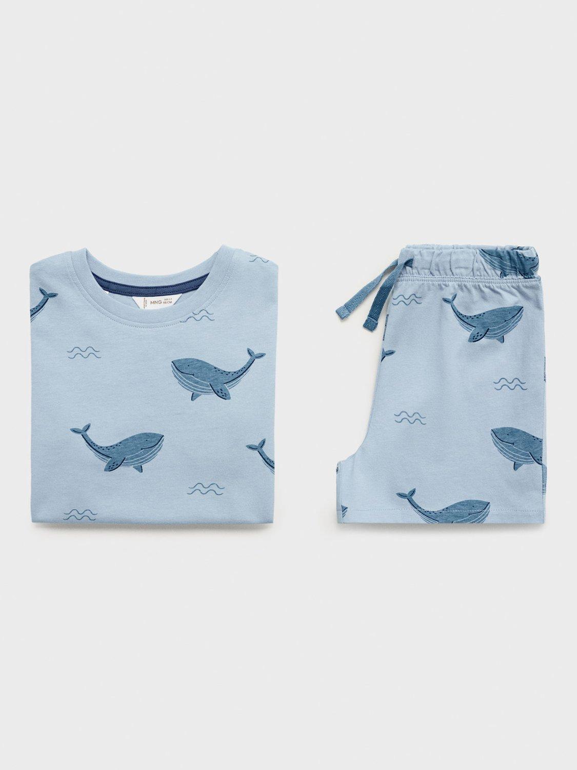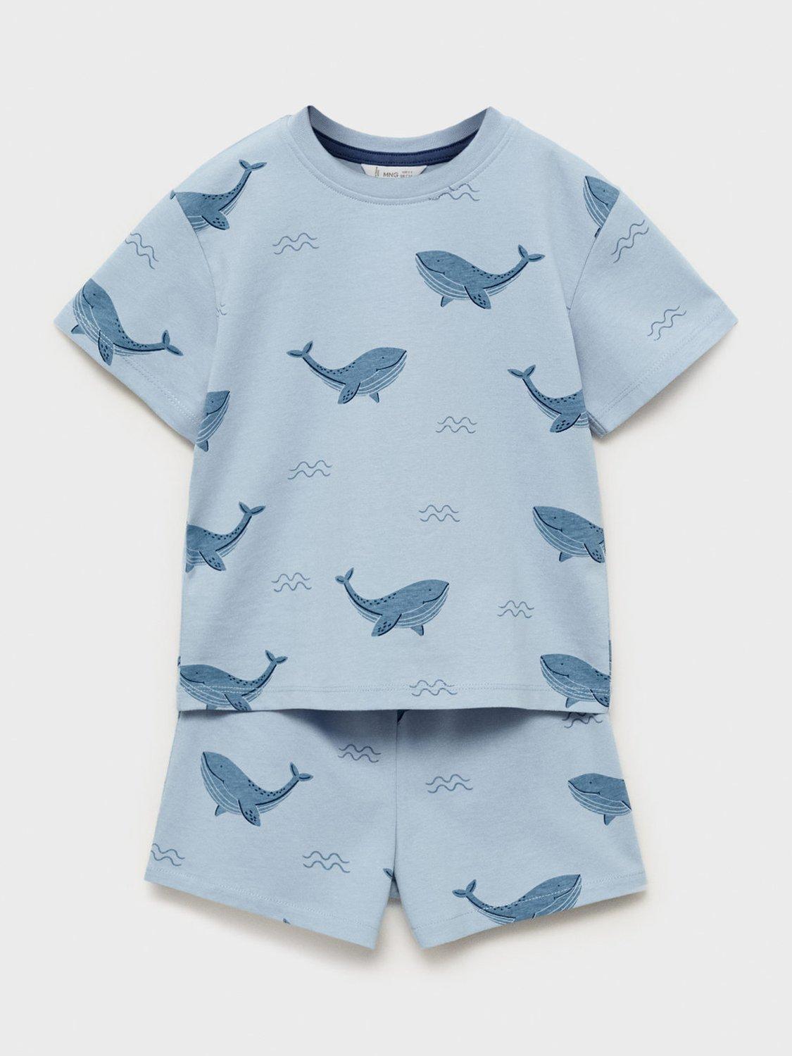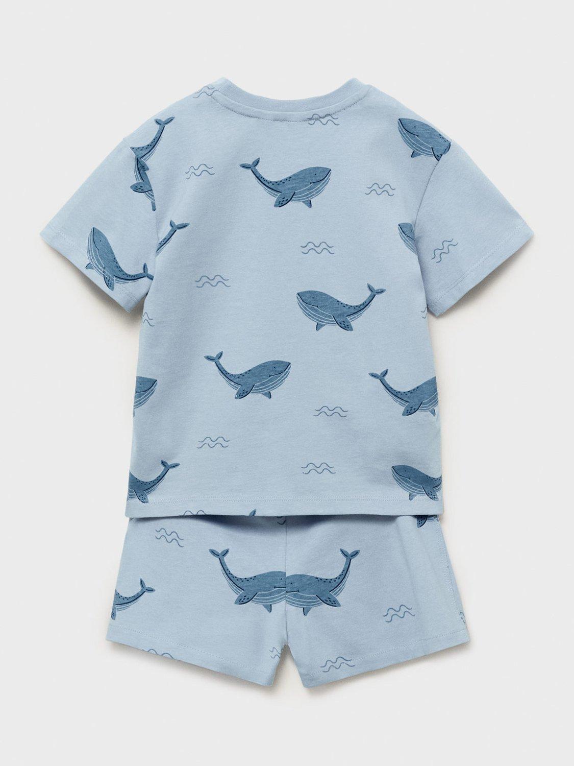 MangoKids' Whale Print Cotton Short Pyjama Set, Medium Blue