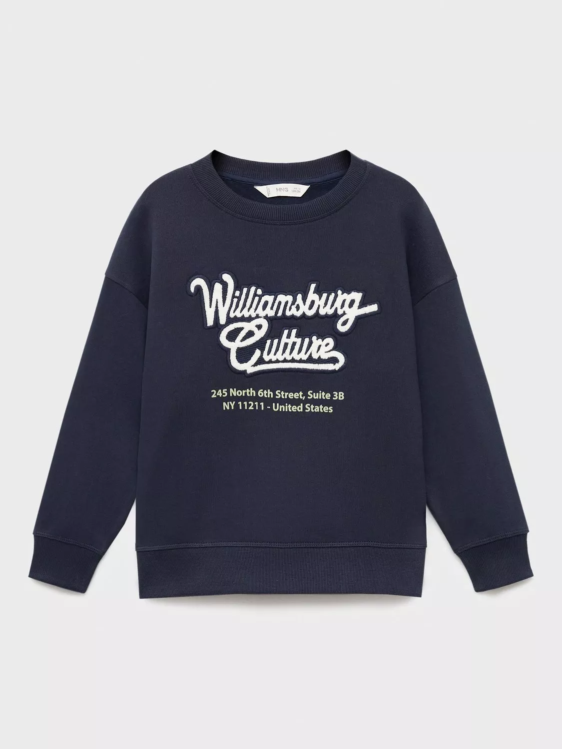 Varsity style sweatshirt with embroidered design.