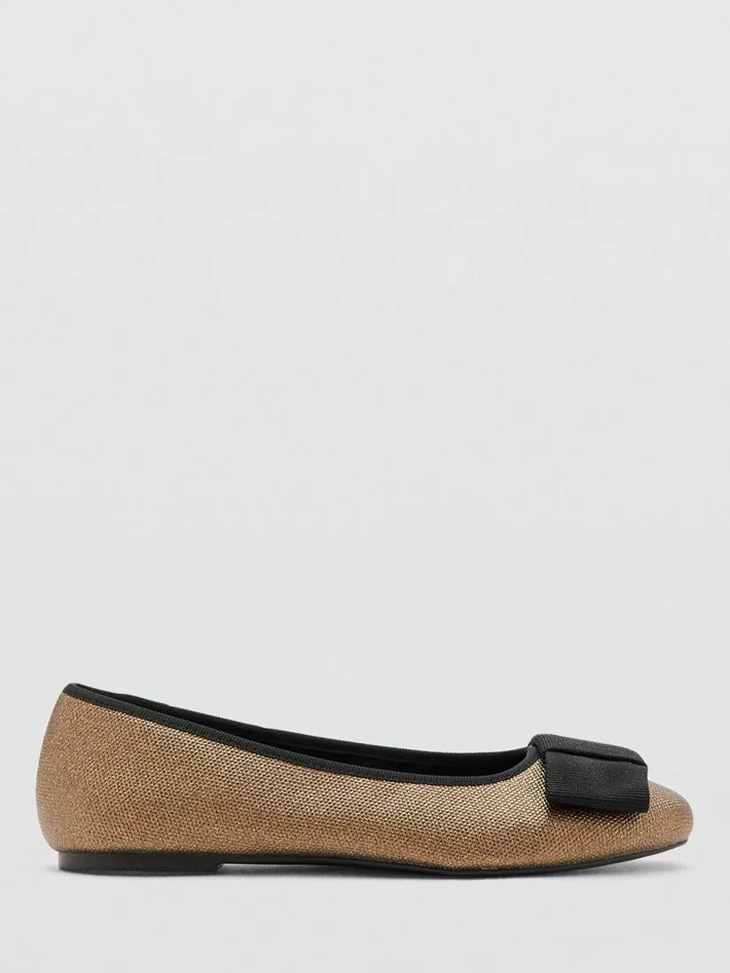 Shimmering gold-effect flats with an effortlessly chic feel. The simple round toe design is enhanced by a pretty bow detail and subtle contrasting finishes. Easy to slip on, comfortable to wear.