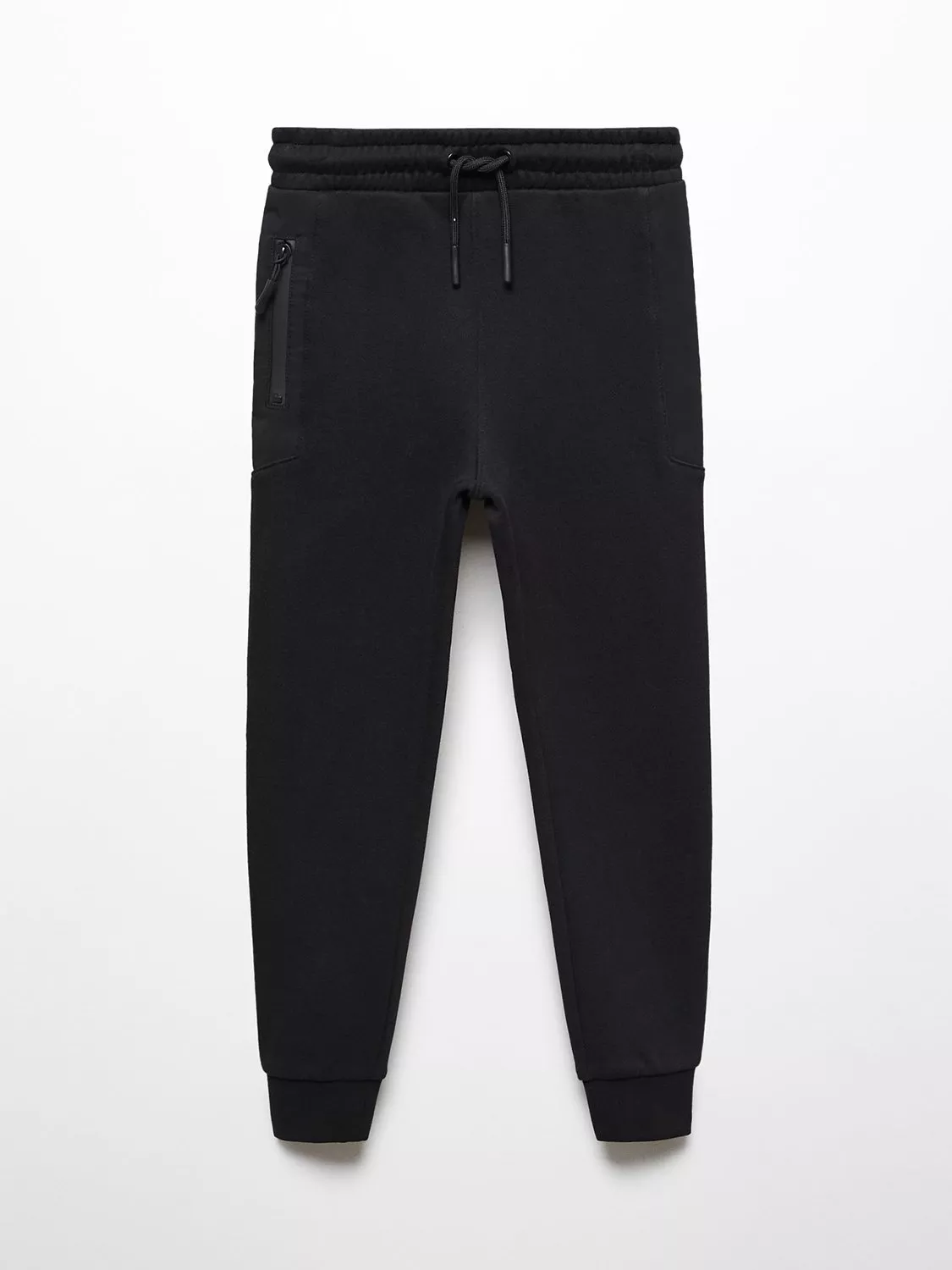 MangoKids' Zip Pocket Detail Draw String Joggers, Black