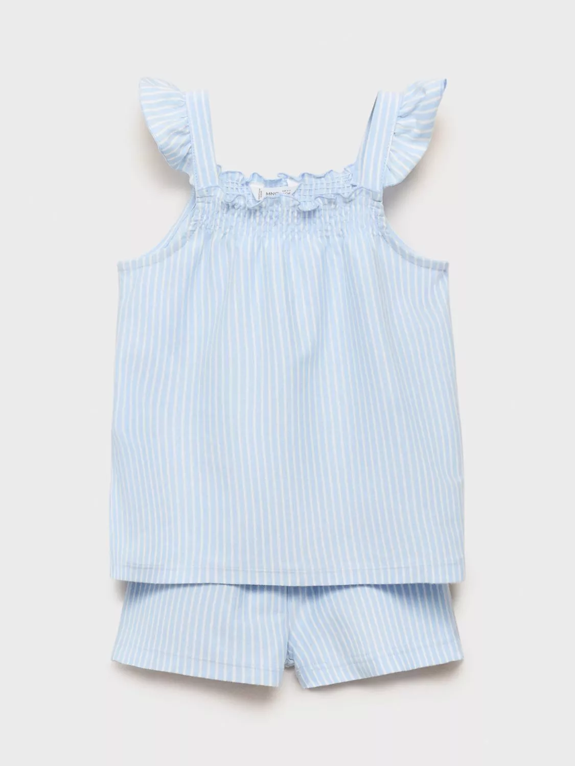 In classic stripes that they are sure to love, these frilly strappy cami and shorts pyjama set from Mango are made from pure cotton for a comfortable night's sleep.