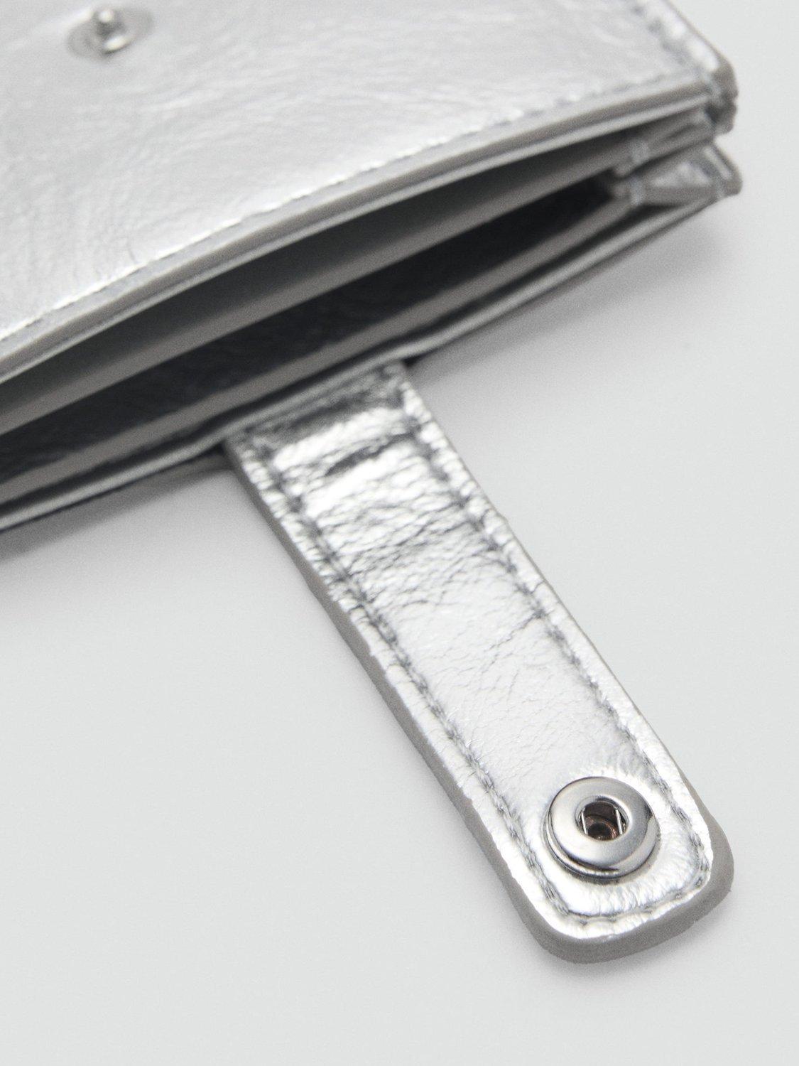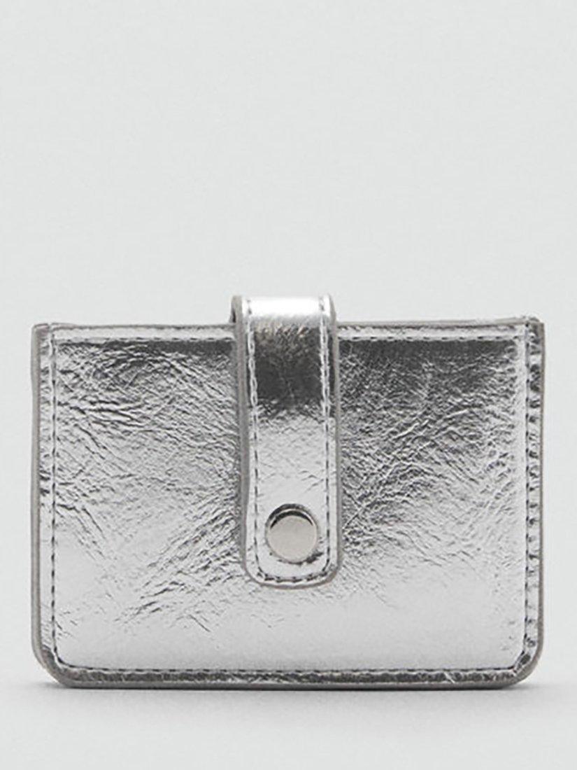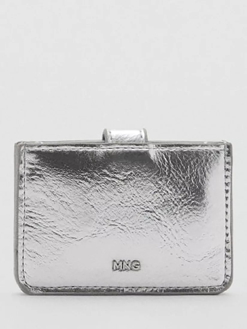 Perfectly complementing your handbag line-up, this metallic card holder from Mango neatly fastens with a simple flapover tab with popper.