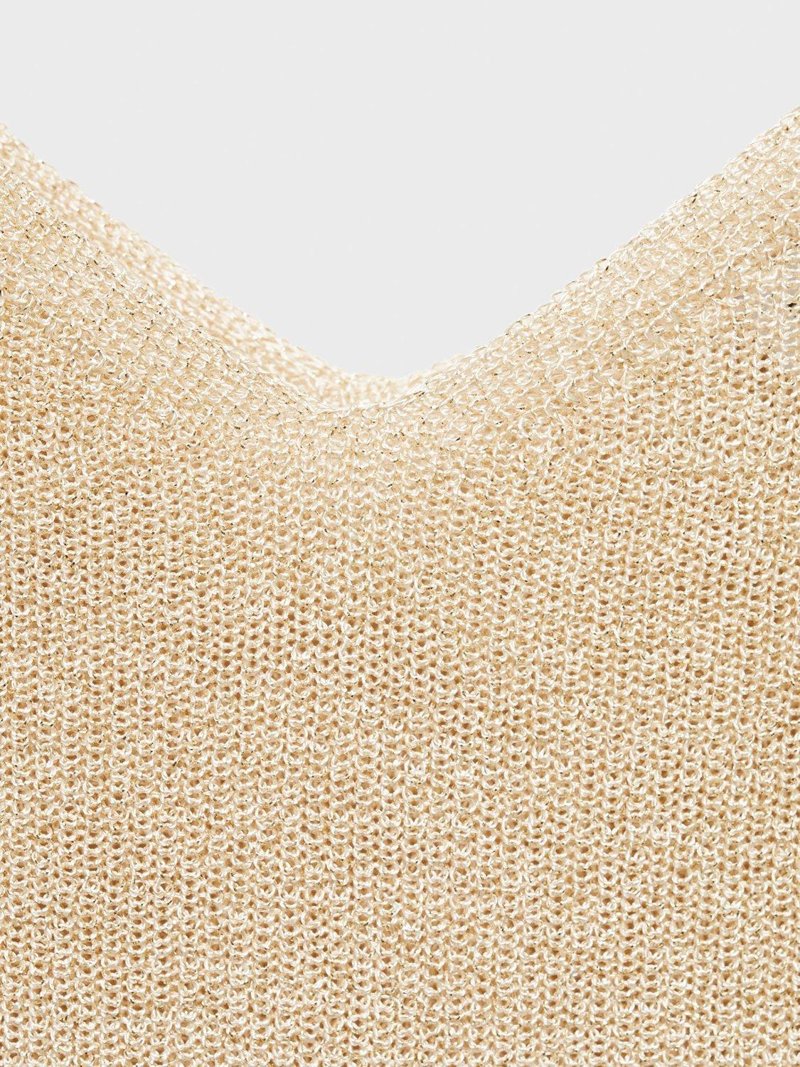 Relaxed yet striking, this V-neck knit top top brings a touch of shine to your daytime plans. The lightweight feel keeps you comfortable, while the playful metallic finish adds a clever twist to your everyday look.