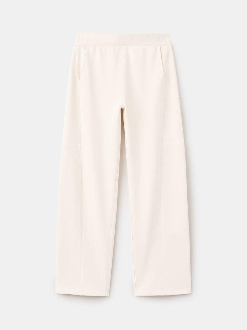 These elastic-waist cotton trousers are crafted from stretch cotton, featuring a straight, long design with a mid-rise, adjustable waist, and two side pockets for comfortable, versatile everyday wear.