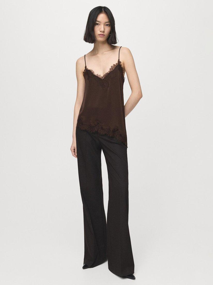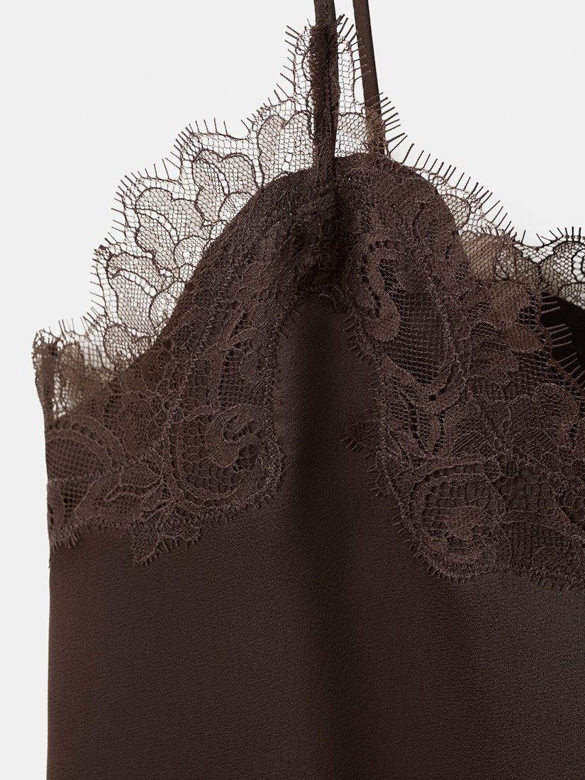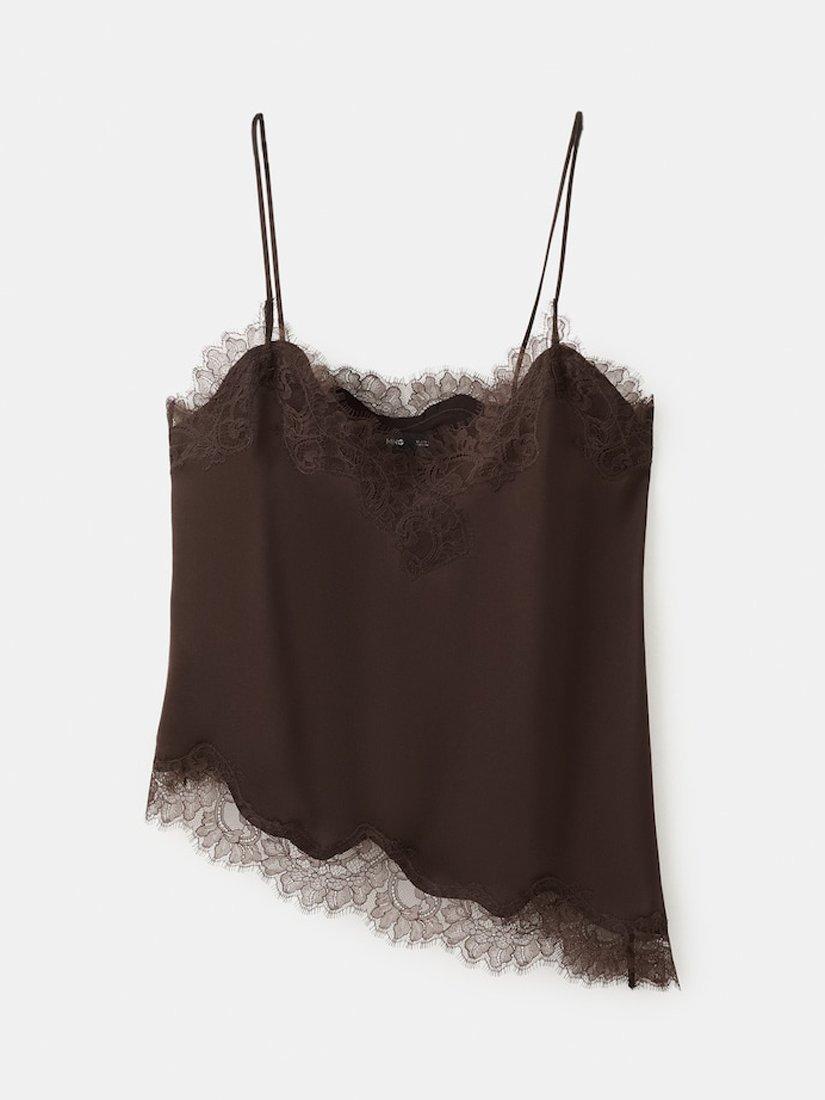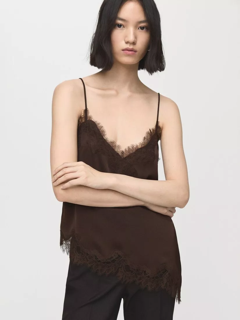 This satin cami features lace edging and spaghetti straps for an elevated everyday look. Its smooth finish and relaxed fit makes it easy to style for both day and night.