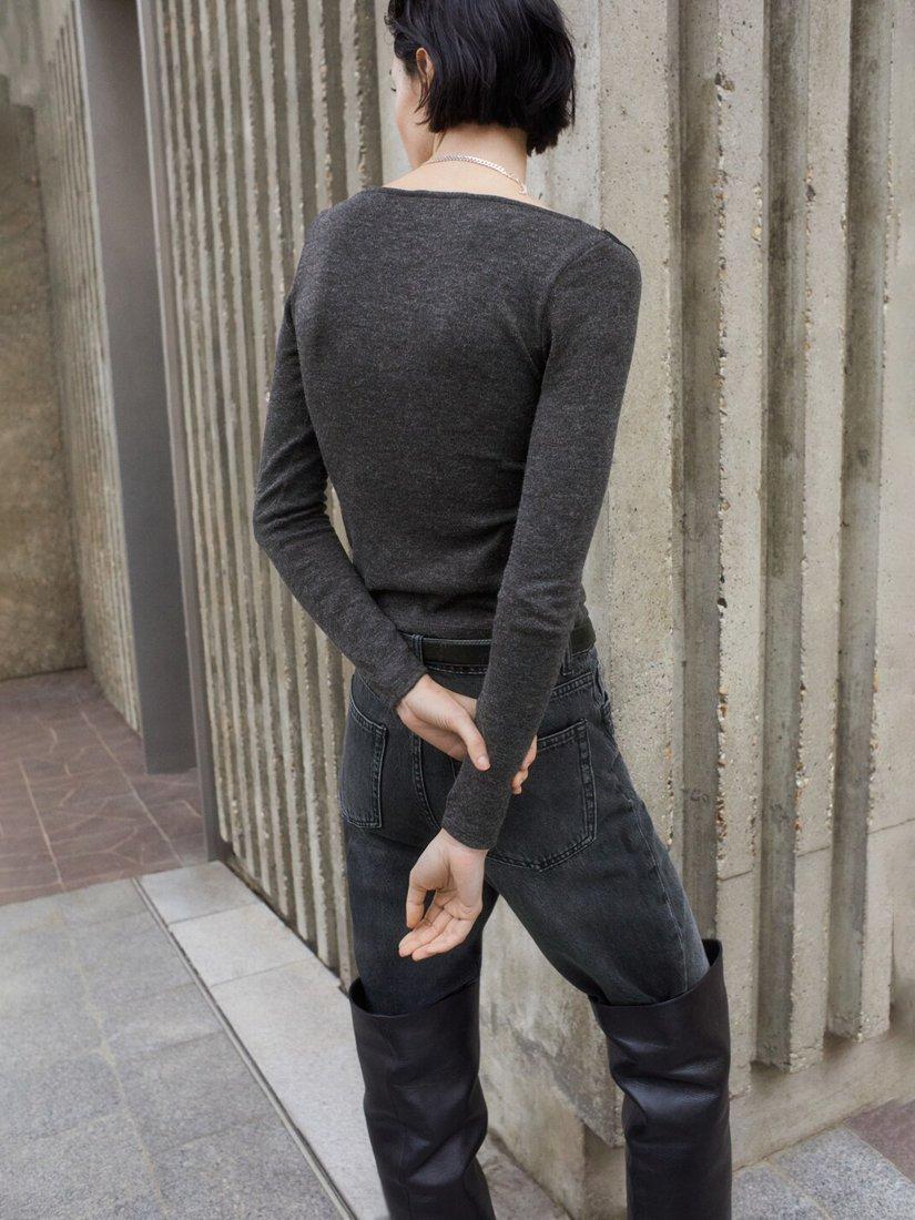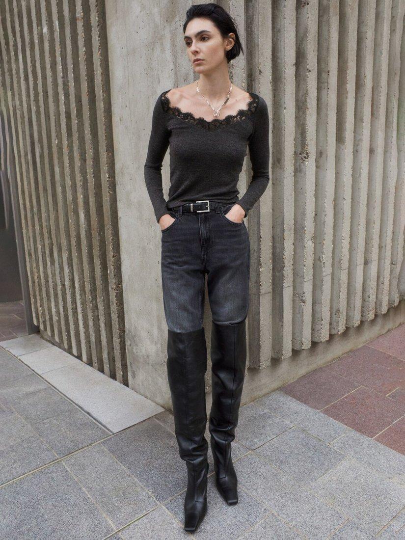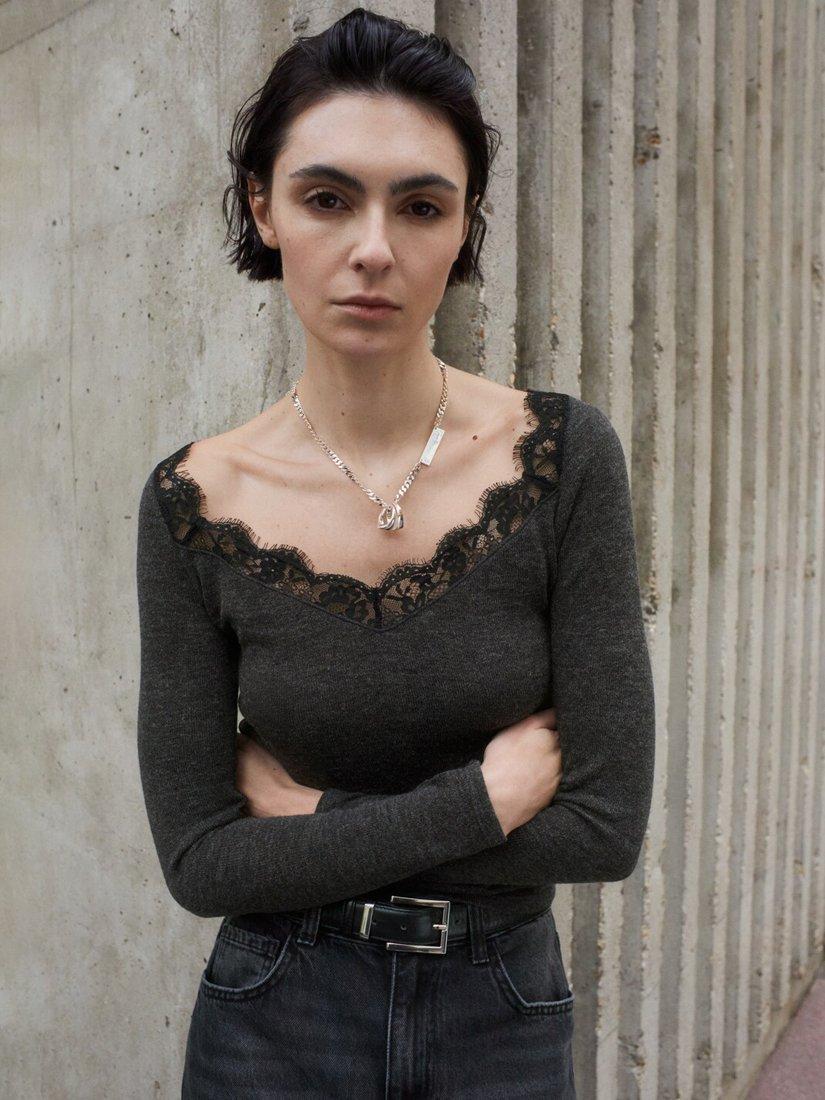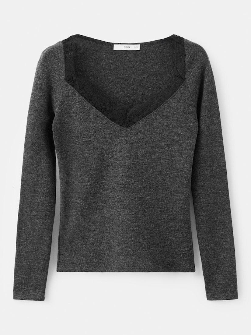 MangoLace Trim Long Sleeve Top, Grey