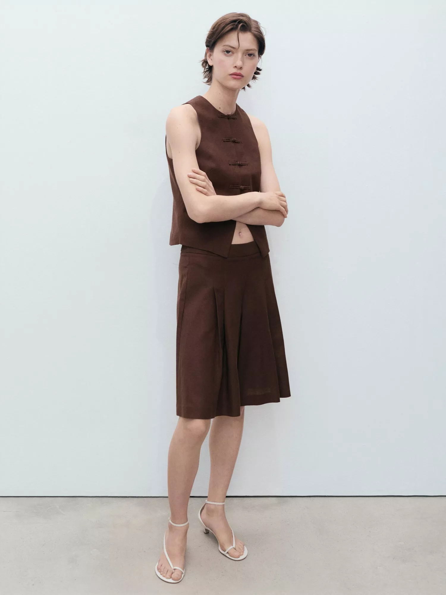 A pair of long suit shorts from Mango. Pairing a cotton and linen blend with a straight design, mid-rise and pleated front detail.